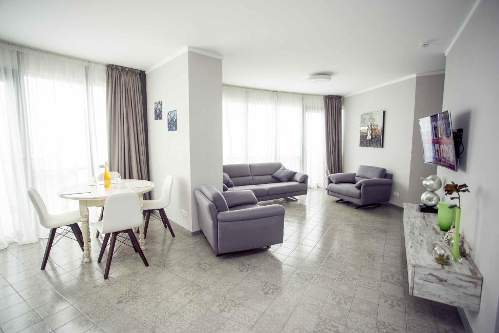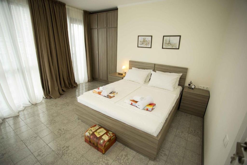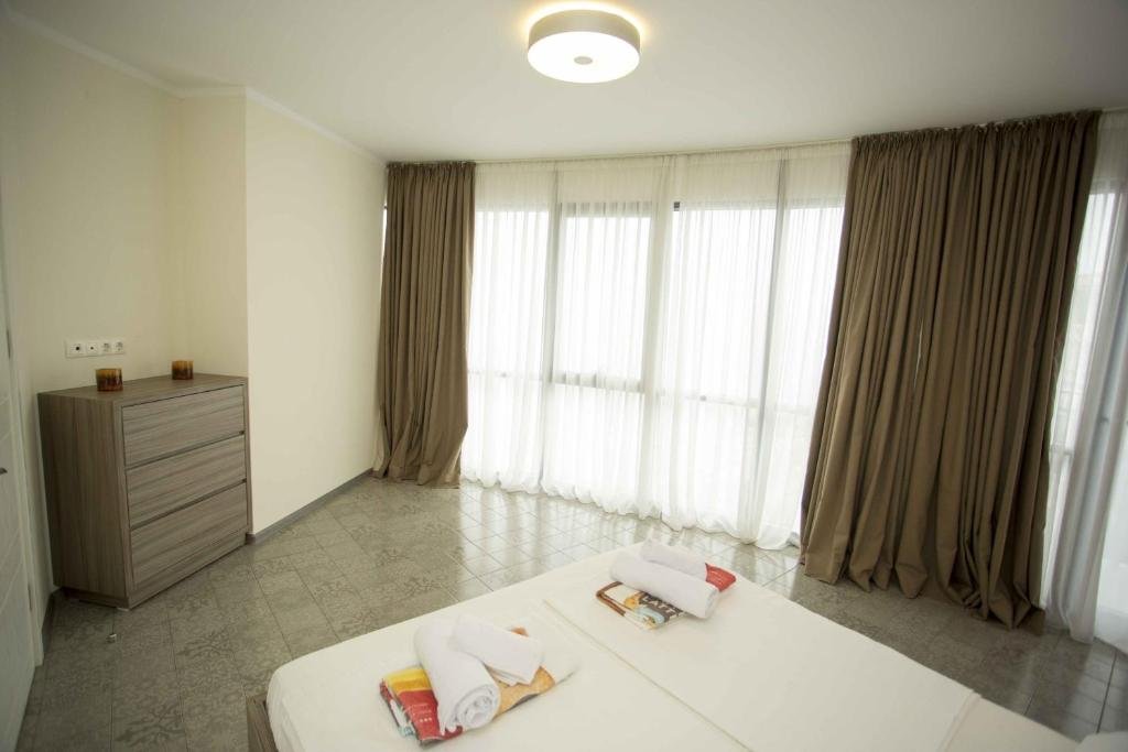 Prime Beachfront Location: 2BR Beachfront Batumi APT Luxury & Sea Views in Batumi offers direct beachfront access with a private beach area. Guests enjoy stunning sea views and a spacious terrace. Comfortable Accommodation: The apartment features two bedrooms, a living room, and a fully equipped kitchen. Amenities include air-conditioning, a balcony, washing machine, and free WiFi. Dining and Leisure: European cuisine is served at the on-site restaurant. Additional facilities include a bar, massage services, and an outdoor seating area. Nearby Attractions: Batumi Beach is a 3-minute walk away, Aquapark Batumi 600 metres nearby, and Batumi International Airport 4 km from the property.