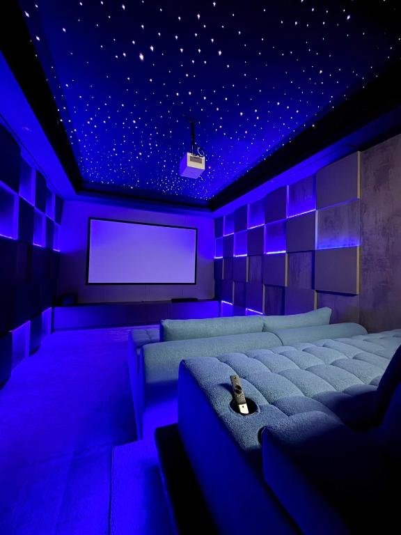 Spacious Accommodation: AB Villa - Pool & Cinema in Ajman offers a spacious villa with three bedrooms and four bathrooms. The property features family rooms, ensuring comfort for all guests. Outdoor Amenities: Guests can relax in the garden or terrace, enjoy the pool with a view, and unwind in the hot tub. The villa includes a balcony and streaming services for entertainment. Modern Facilities: The villa is equipped with air-conditioning, a fully fitted kitchen, washing machine, and free on-site private parking. Additional amenities include a walk-in shower, refrigerator, and parquet floors. Convenient Location: Located 11 km from Sharjah International Airport, the villa is close to attractions such as Sharjah Golf and Shooting Club (13 km) and Ajman China Mall (14 km). Highly rated for room cleanliness.