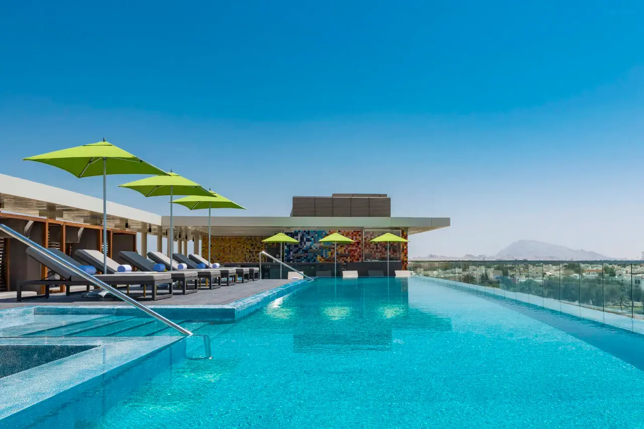 Aloft Al Ain is a sassy & savvy 4-star hotel in the heart of an oasis city. At our stylish business hotel, guests enjoy easy-breezy access to the Hazza Bin Zayed Stadium, Al Ain Square, Convention Center, and International Airport. Adventure calls at the wild Al Ain Zoo, Al Ain Adventure and Jebel Hafeet Mt. Pop-in for a staycation or long stay, check-in to easygoing Rooms styled with the essentials, like ultra-comfortable beds, walk-in showers and links to the 42” LCD TV. Turn Up your stay in a unique Suite with connecting room options. Host meetings in our four flexible Tactic rooms. Meet & mingle over sips & live spins in W XYZ Lounge & Garden. Join the social scene with high-rise views from The Rooftop. Soak up the sun and dip into our Splash Pool. Re:Fuel, Grab & Go for snacks on the move. Mellow out at Olive Tree for a fresh International brekkie, midday munch and feasting dinner. Re:Charge (24hr) gym, equipped for your sweat sesh. Charge and connect with the Plug & Play stations and fast free Wi-Fi.