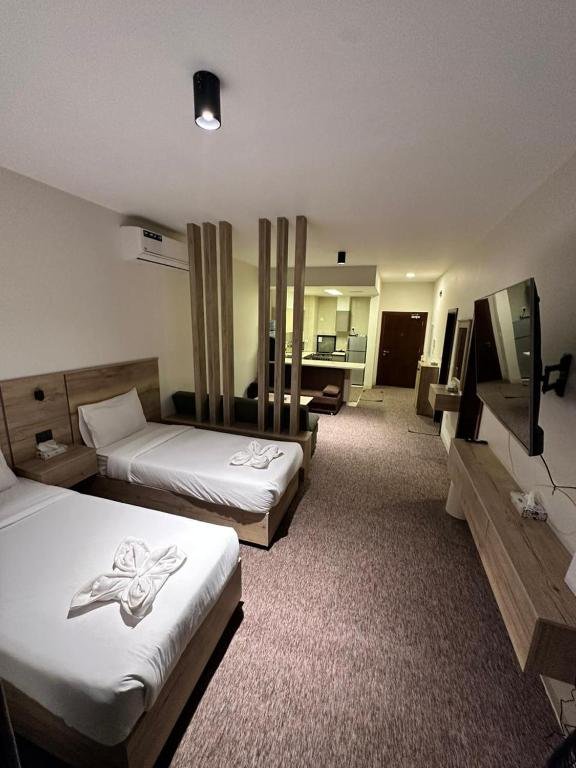 Elegant Accommodation: Alraha VIP Marsa zayed Aqaba offers a comfortable apartment in Aqaba. Guests enjoy a swimming pool with a view, a lush garden, and a spacious terrace. Free WiFi is available throughout the property. Modern Amenities: The apartment features family rooms, air-conditioning, a hot tub, and a fully equipped kitchenette. Additional amenities include a balcony, washing machine, and free on-site private parking. Prime Location: Located 14 km from King Hussein International Airport, the property is close to attractions such as Royal Yacht Club (1.7 km) and Aqaba Fort (6-minute walk). Scuba diving is available in the surrounding area. Exceptional Service: Highly rated for its attentive staff and excellent service support, Alraha VIP Marsa zayed Aqaba ensures a pleasant and memorable stay.