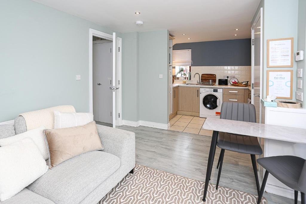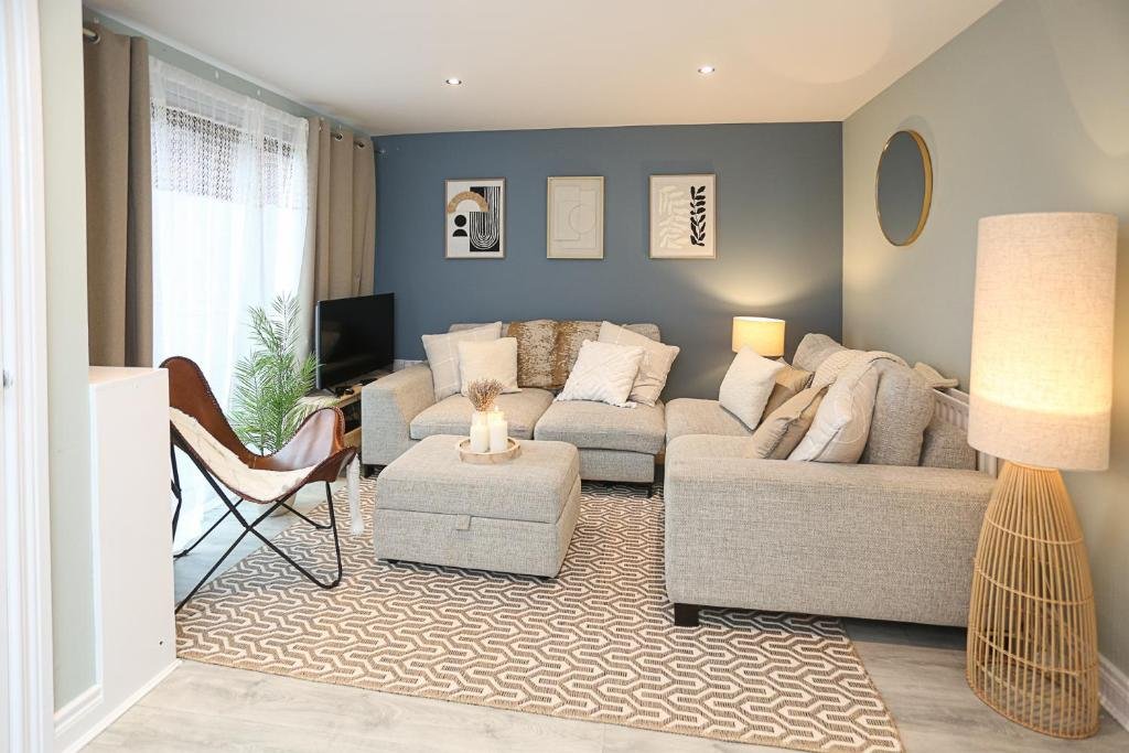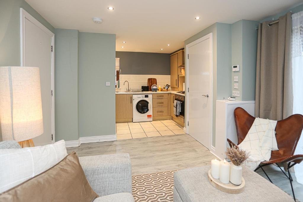 Elegant Accommodation: Ardenlee Drive offers a 5-star apartment in Belfast. Guests enjoy free WiFi and free on-site private parking. The ground-floor unit features an inner courtyard view and a private entrance. Modern Amenities: The apartment includes a washing machine, patio, kitchen, tea and coffee maker, hairdryer, coffee machine, refrigerator, seating area, free toiletries, microwave, shower, TV, and sofa. Additional amenities include an electric kettle, kitchenware, oven, and stovetop. Prime Location: Located 5 km from George Best Belfast City Airport, the property is close to attractions such as The Waterfront Hall (3 km), Titanic Belfast (4.3 km), and Belfast Castle (10 km).
