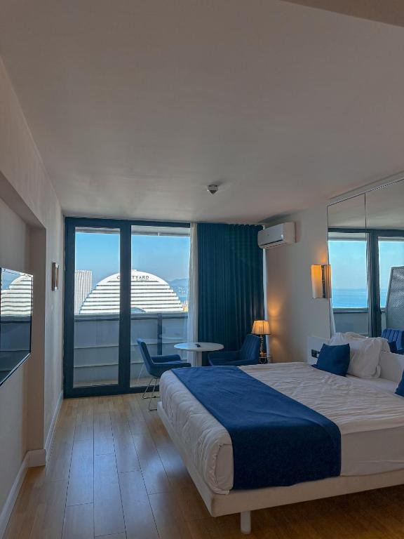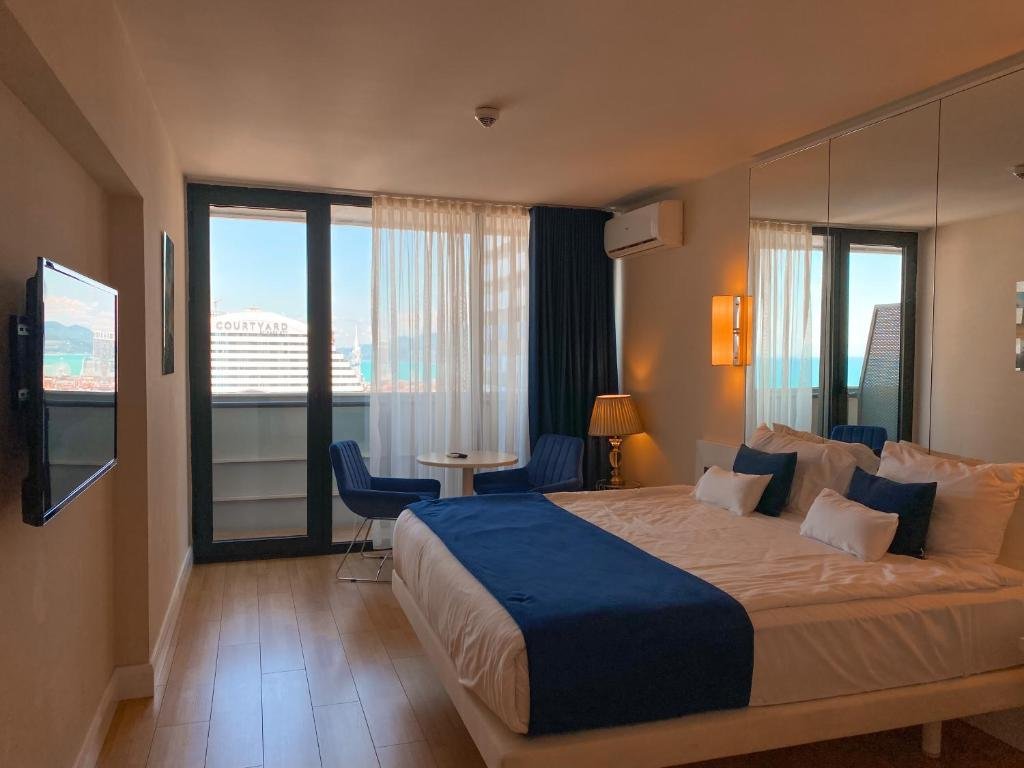 Prime Location: Batumi High Floor in Batumi offers a beachfront setting with a private beach area. Batumi Beach is a 2-minute walk away, while Aquapark Batumi lies less than 1 km from the hotel. Batumi International Airport is 5 km distant. Comfortable Accommodations: Rooms feature sea views, air-conditioning, balconies, and private bathrooms. Guests enjoy amenities such as free WiFi, minibars, and flat-screen TVs. Family rooms and interconnected rooms cater to all needs. Dining Experience: The family-friendly restaurant serves Middle Eastern, Turkish, Russian, and international cuisines. Breakfast options include continental, American, buffet, Italian, full English/Irish, vegetarian, halal, and Asian. Additional facilities include a bar and coffee shop. Local Attractions: Nearby attractions include Batumi Archeological Museum (2.3 km) and Medea Monument (2.7 km). An ice-skating rink is also available in the surroundings.
