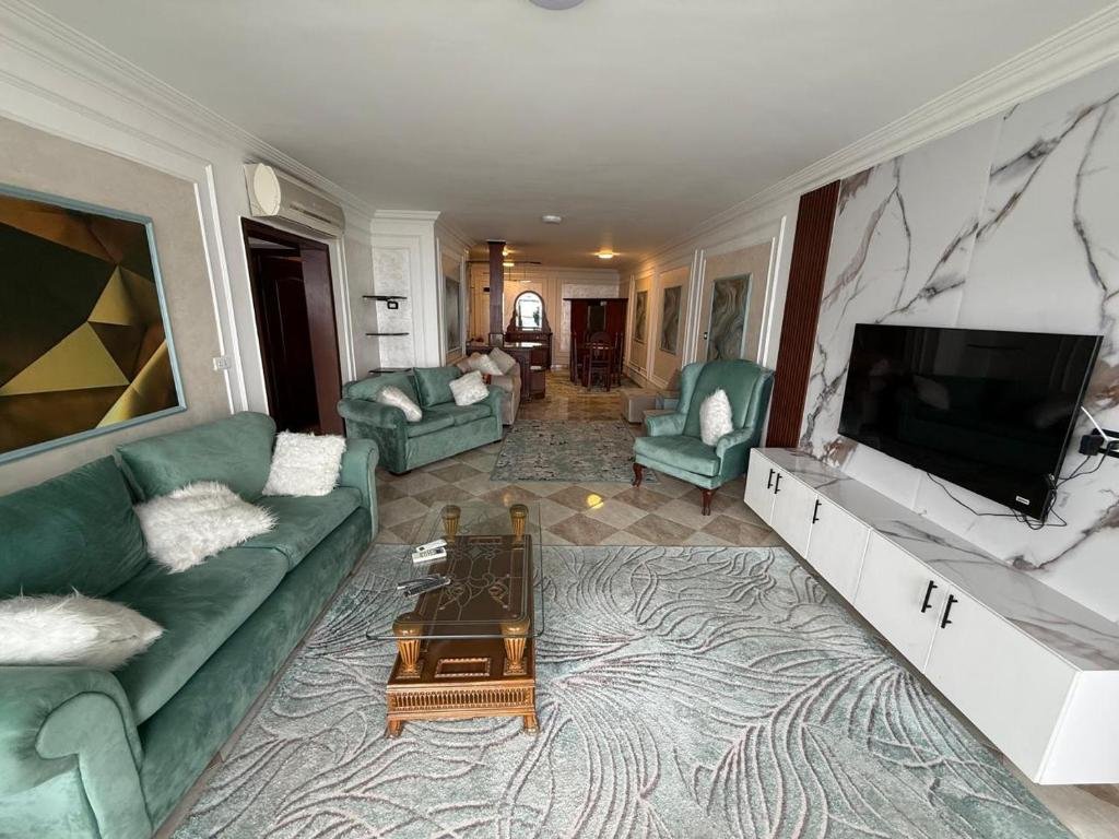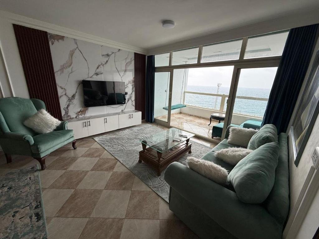 Beachfront Location: Gleem Sea View 4 in Alexandria offers direct beachfront access and a sun terrace. Guests enjoy stunning sea views and a relaxing atmosphere. Spacious Accommodation: The apartment features two bedrooms, a living room, and a fully equipped kitchen. Amenities include air-conditioning, a balcony, washing machine, and free WiFi. Convenient Facilities: Private check-in and check-out, a lift, 24-hour front desk, and full-day security ensure a comfortable stay. Additional services include room service, a minimarket, and grocery delivery. Nearby Attractions: Glime Beach is a 3-minute walk away, while Stanley Bridge lies 1 km from the property. Borg el Arab International Airport is 54 km distant.