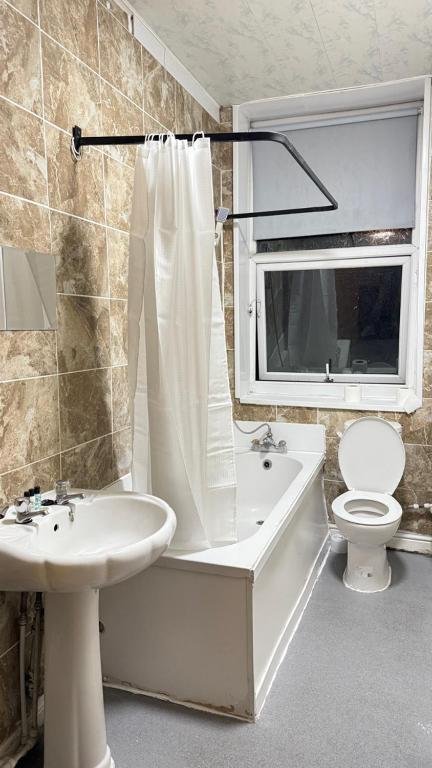 Comfortable Accommodation: Check Inn 247 in Bradford offers a spacious apartment with a private garden and free WiFi. The property features family rooms, a dining area, and a sofa bed. Convenient Facilities: Guests benefit from private and express check-in and check-out services, daily housekeeping, a tour desk, and luggage storage. Free on-site parking is available. Modern Amenities: The apartment includes a private bathroom with free toiletries, a shower, and soundproofing. Additional amenities include streaming services, a fireplace, and a city view. Nearby Attractions: Leeds Bradford International Airport is 14 km away. Points of interest include Victoria Theatre (12 km), Leeds Town Hall (16 km), and First Direct Arena (17 km).
