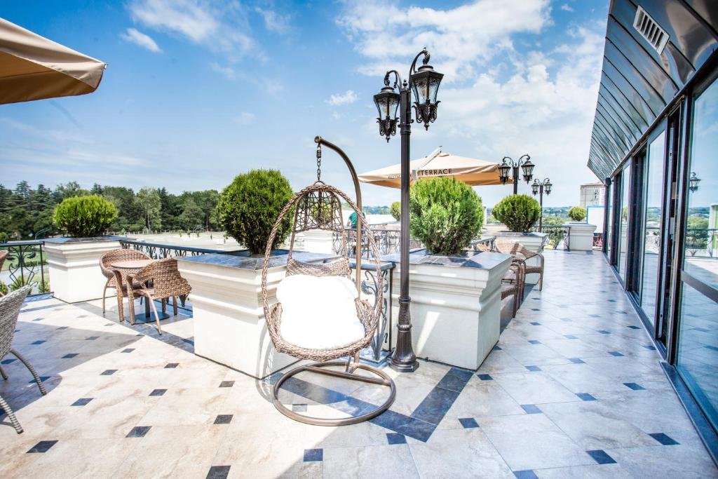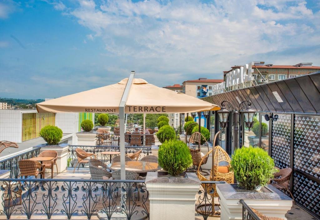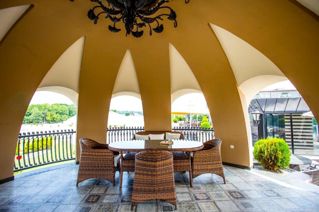 Comfortable Accommodations: Garden Palace in Zugdidi offers family rooms with air-conditioning, private bathrooms, and modern amenities. Each room includes a balcony with garden or mountain views, ensuring a pleasant stay. Dining Experience: Guests can enjoy a variety of dining options, including a terrace, restaurant, and bar. The family-friendly restaurant serves local specialties, European cuisine, and pizza, catering to diverse preferences. Convenient Facilities: The hotel features free WiFi, a paid shuttle service, and a 24-hour front desk. Additional amenities include a lounge, minimarket, and outdoor seating area, providing comfort and convenience. Prime Location: Located 52 mi from Kutaisi International Airport, Garden Palace is located in Zugdidi, offering easy access to local attractions.