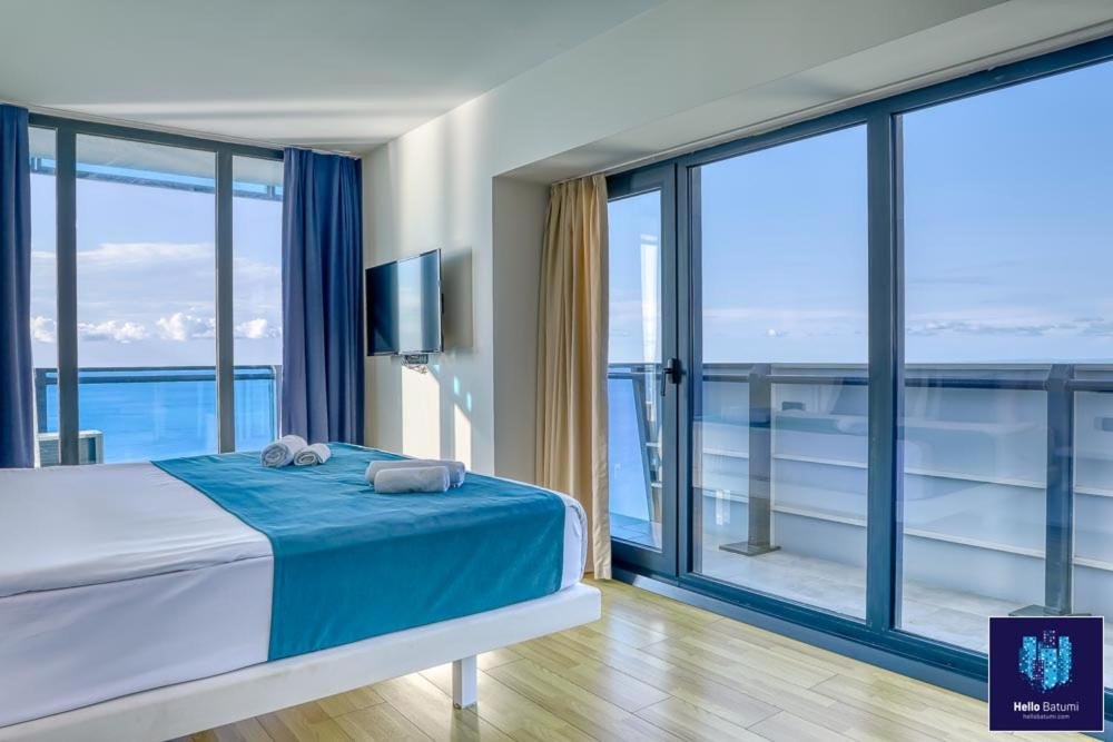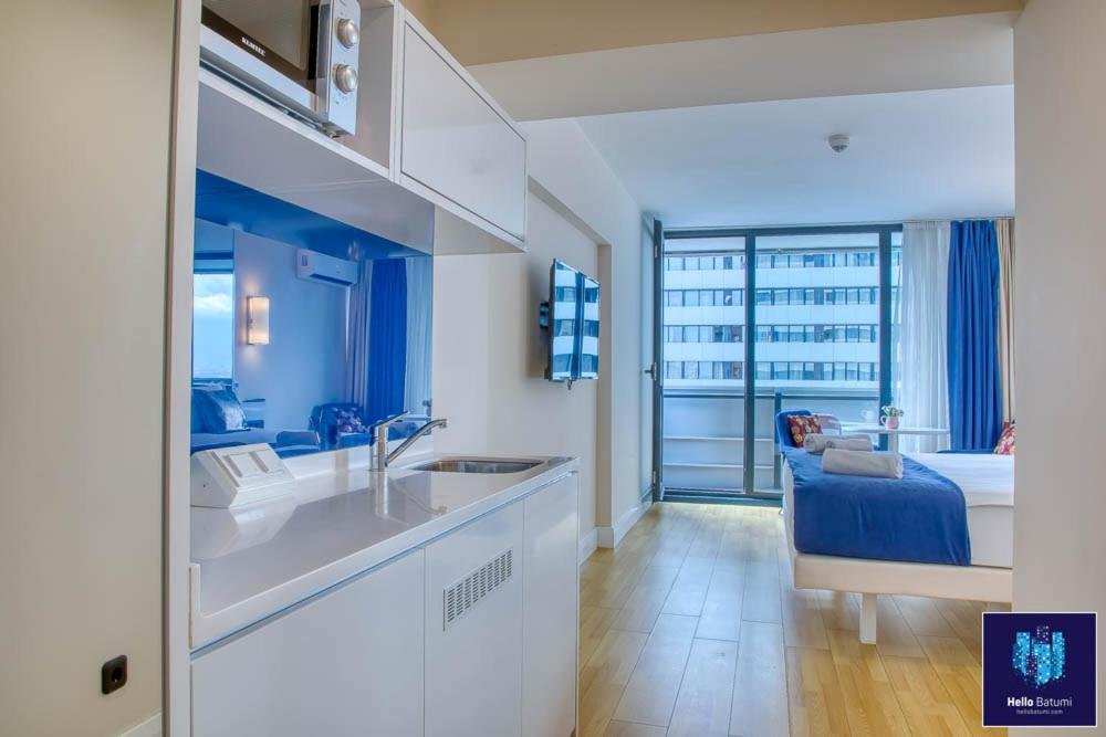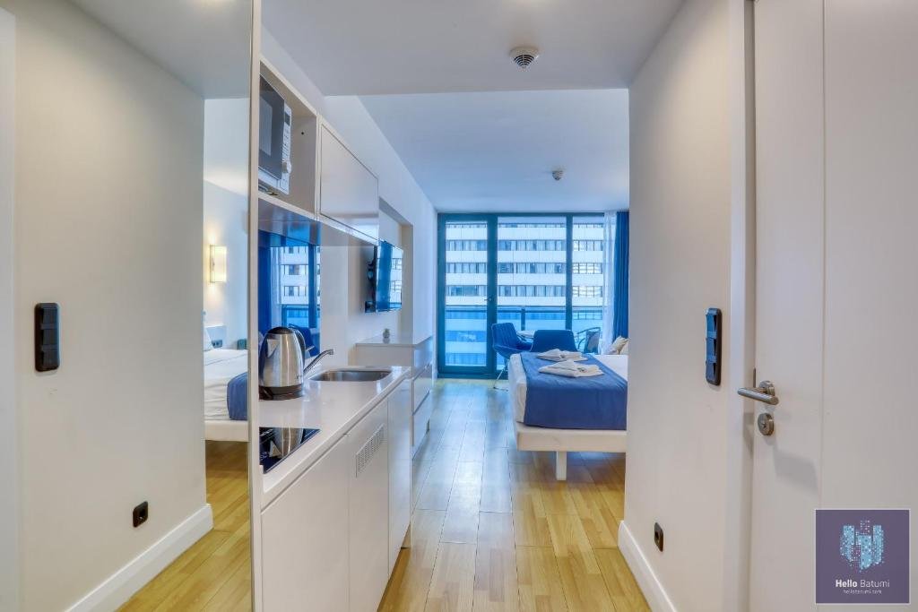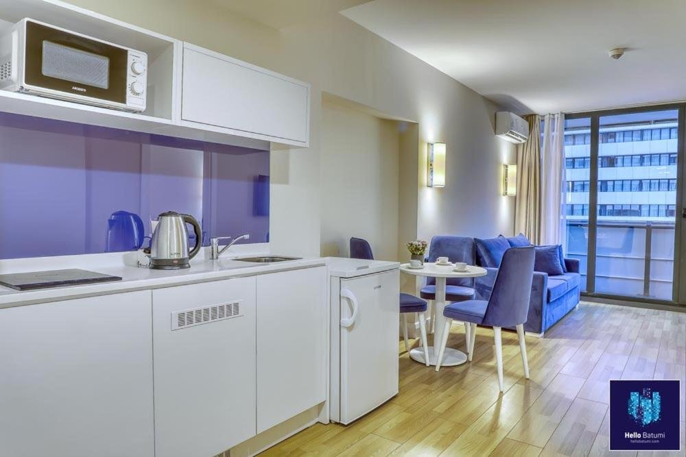 Beachfront Location: HelloBatumi in Batumi offers direct beachfront access with stunning sea views. Guests can relax on the terrace or balcony and enjoy the sunshine. Comfortable Accommodations: The aparthotel features family rooms with air-conditioning, kitchenettes, and private bathrooms. Each unit includes a balcony or patio, ensuring a pleasant stay. Convenient Facilities: Guests benefit from free WiFi, a lift, 24-hour front desk, and full-day security. Additional amenities include bicycle parking, washing machine, and an outdoor dining area. Nearby Attractions: Batumi Beach is a 5-minute walk away, Aquapark Batumi less than 1 km, and Batumi Archeological Museum 2 km from the property. Batumi International Airport is 5 km distant.