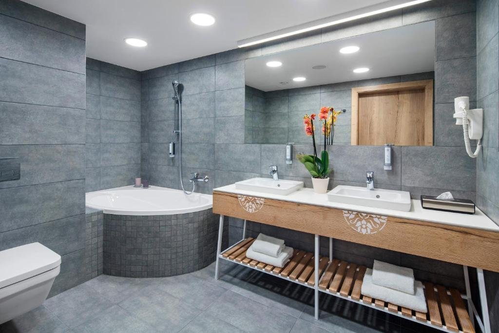 Aquarion Family & Friends - Destigo Hotels is located in Zakopane, just a few steps from the Termy Zakopańskie, which for additional fee offers guests access to swimming pools and water attractions. The hotel guarantees express check-in and check-out, 24-hour reception, allergy-free rooms, restaurant and bar. Free WiFi is available throughout the hotel. Guests can enjoy steam and Finnish saunas and a fitness room. A playroom with toys, books and table tennis are provided for guests with children. Animation classes are held on selected days. All rooms are equipped with a wardrobe, desk, mini-bar and flat-screen TV. Each room has a private bathroom. A continental or buffet breakfast is served each morning. The restaurant Górna Stacja serves regional dishes interwoven with the flavors of European cuisine. On holiday Saturday evenings there is live regional music. The area is popular for hiking and skiing. The Pardalowka Ski Elevator is 1. 4.3 mi from the hotel, while the Wielka Krokiew Ski Jump is 1. 5 mi away. The nearest airport is Krakow-Balice Airport, 70 mi from the property.