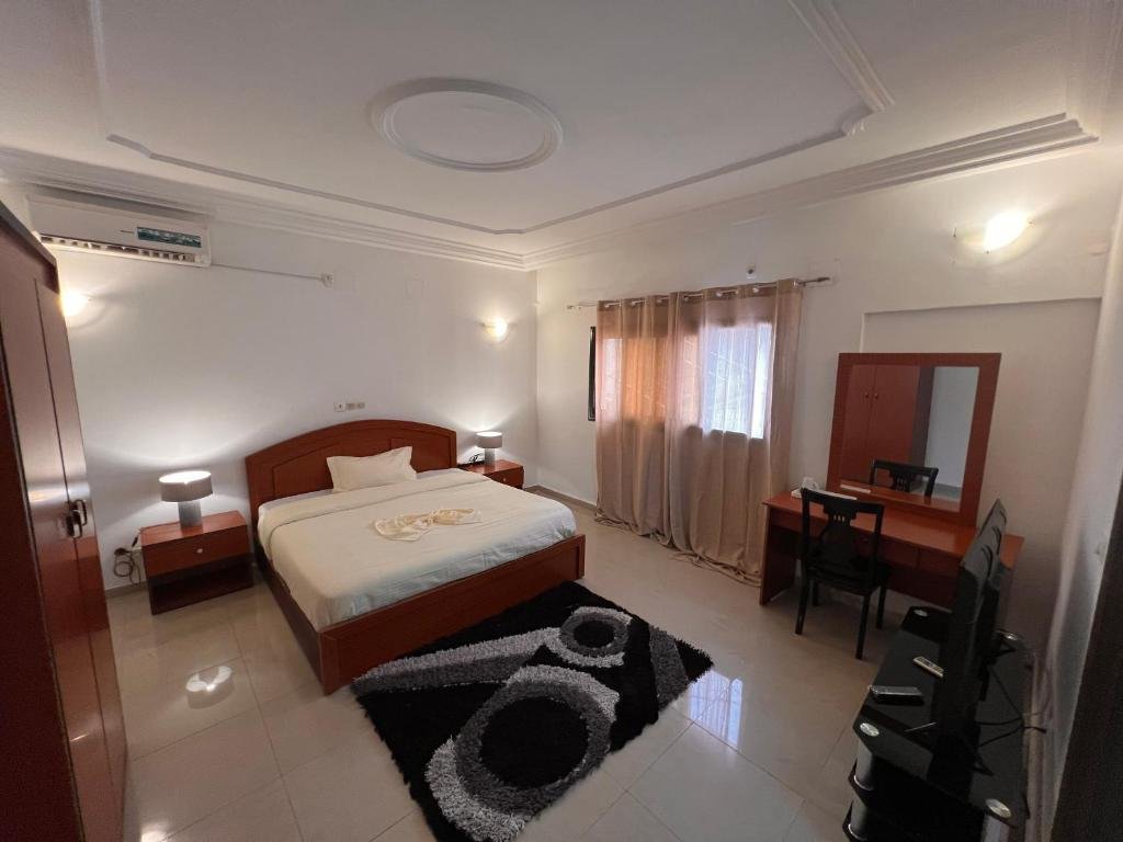 Comfortable Accommodations: Hotel La Roche in Brazzaville offers family rooms with air-conditioning, private bathrooms, and garden or city views. Each room includes a work desk, TV, and free toiletries. Dining and Leisure: Guests can enjoy a restaurant serving African and American cuisines, a bar, and a terrace. The hotel features a garden, coffee shop, and live music. Additional amenities include a beauty salon and free on-site private parking. Prime Location: Located 19 minutes from the Pierre Savorgnan de Brazza Memorial and 4 km from Maya-Maya Airport, the hotel is near Patte d'Oie Forestry Reserve.