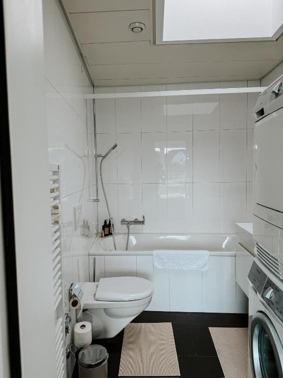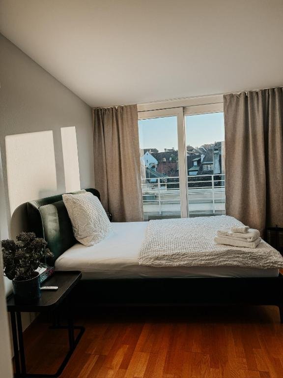 Modern Comforts: Just Sunny - Rooftop mitten in der Stadt offers a comfortable apartment in Basel city centre. Guests enjoy free WiFi, air-conditioning, and a balcony with city views. Convenient Facilities: The property features private check-in and check-out services, a lift, outdoor seating area, family rooms, and bicycle parking. Paid off-site parking is available. Local Attractions: Nearby attractions include the Jewish Museum of Basel (6-minute walk), Zoological Garden (1.1 km), and Basel Cathedral (4-minute walk). The Basel SBB station is a 15-minute walk away. Leisure Activities: The surrounding area offers an ice-skating rink and water sports.
