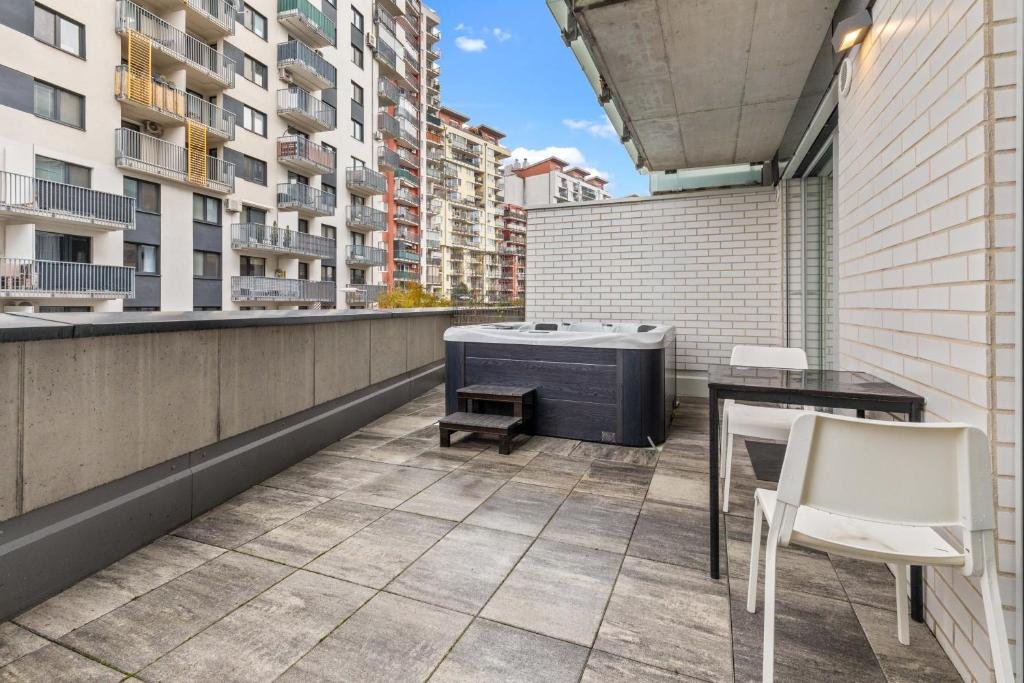 Spacious Accommodation: LAM Jegeho Alej in Bratislava offers a spacious apartment with one bedroom and a living room. The property includes a terrace, year-round outdoor swimming pool, and free WiFi. Modern Amenities: Guests enjoy a kitchenette, private check-in and check-out services, lift, hot tub, outdoor seating area, family rooms, and full-day security. Free on-site private parking is available. Prime Location: Located 6 km from Bratislava Airport, the apartment is a 3-minute walk from Ondrej Nepela Arena. Nearby attractions include Bratislava Main Station (2.7 km) and Bratislava Castle (4.5 km). Highly rated for its hot tub, cleanliness, and location.