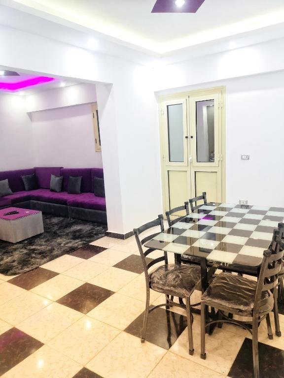Spacious Accommodation: Leila casa in Alexandria offers a spacious apartment with two bedrooms and a living room. The terrace provides a relaxing outdoor space, complemented by a balcony. Modern Amenities: The apartment features air-conditioning, a kitchenette, washing machine, and a work desk. Additional amenities include a dining area, TV, and tiled floors. Convenient Location: Located 56 km from Borg el Arab International Airport, the property is close to attractions such as Abu Haif Beach (2.4 km) and the Alexandria Zoo (7 km). Services and Facilities: Leila casa provides private check-in and check-out, a paid shuttle service, lift, minimarket, hairdresser/beautician, family rooms, full-day security, and bicycle parking.