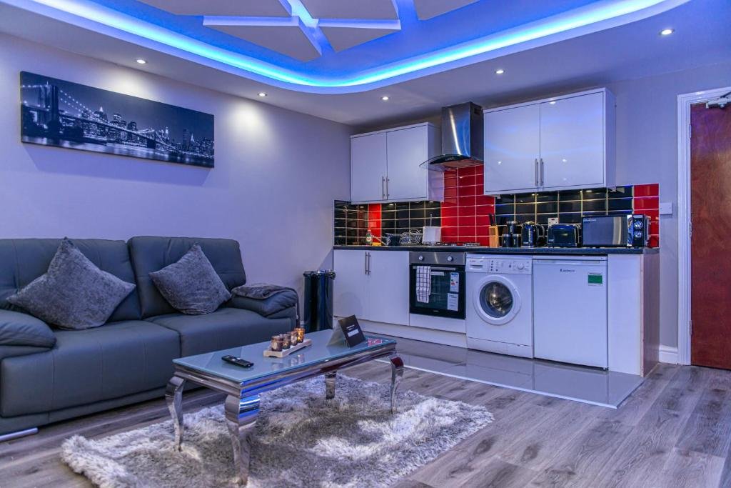 Comfortable Accommodation: Meridian Serviced Apartments in Bradford offers 4-star apartments with free WiFi, family rooms, and car hire. Free on-site private parking is available. Modern Amenities: Each apartment includes a kitchenette, streaming services, washing machine, private bathroom, and a seating area. Additional features include a dining table, ground-floor unit, and carpeted floors. Convenient Location: Located 15 km from Leeds Bradford International Airport, the property is close to attractions such as Victoria Theatre (12 km) and First Direct Arena (17 km). Guests appreciate the room cleanliness, comfort, and bed comfort.