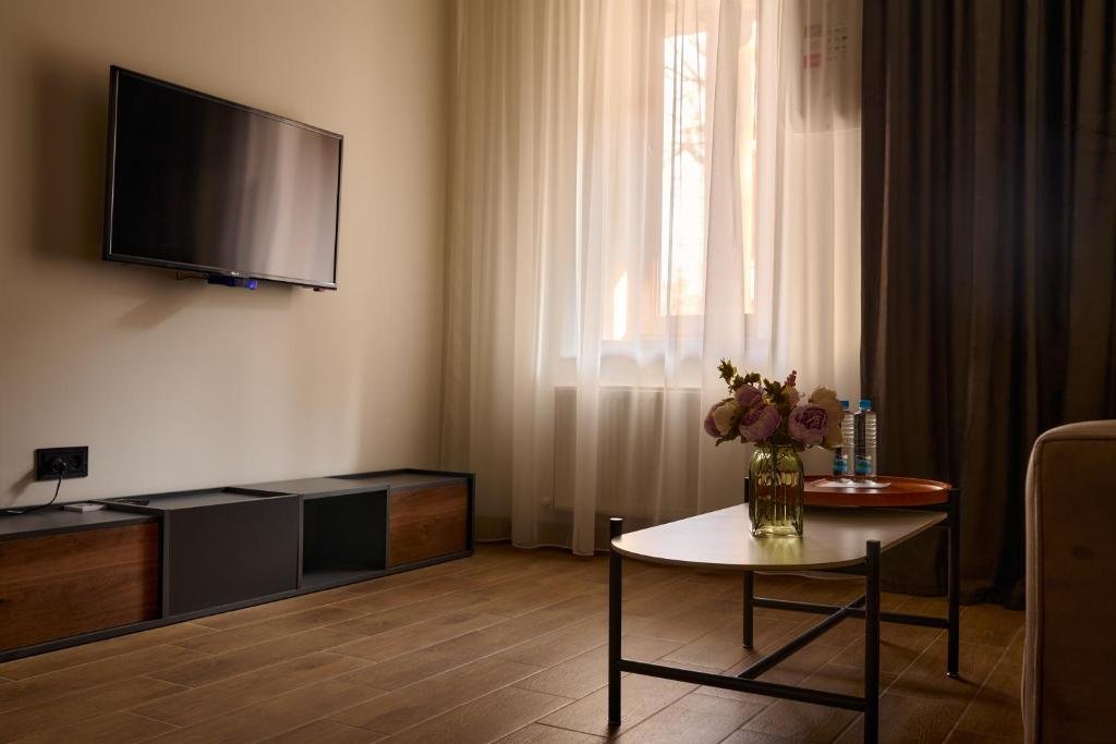 Comfortable Accommodations: Norekats in Yerevan offers 4-star aparthotel accommodations with free WiFi, air-conditioning, and private bathrooms. Each unit includes a fully equipped kitchen, dining table, sofa bed, and work desk. Convenient Facilities: Guests benefit from a paid shuttle service, 24-hour front desk, family rooms, full-day security, bicycle parking, breakfast in the room, express check-in and check-out, and luggage storage. Free on-site private parking is available. Prime Location: Located 8.1 mi from Zvartnots International Airport and 1.2 mi from Yerevan State University, the aparthotel is near attractions such as Yerevan Cascade (1.8 mi) and Republic Square (2.3 mi).