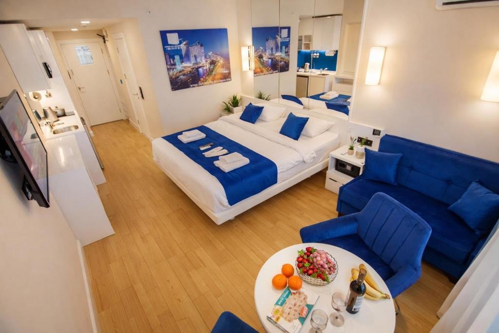 Prime Location: ORBI CITY - City Center Apartments in Batumi offers a beachfront setting with a private beach area. Batumi Beach is a 2-minute walk away, while Aquapark Batumi lies less than 1 km from the property. Exceptional Facilities: Guests enjoy spa facilities, a private beach area, a garden, a restaurant, a bar, and free WiFi. Additional amenities include a fitness room, yoga classes, and a casino. Comfortable Accommodations: Aparthotel features family rooms with sea views, balconies, and kitchenettes. Each room includes air-conditioning, a private bathroom, and a dining area. Local Attractions: Nearby attractions include Batumi Archeological Museum (2.3 km) and Ali and Nino Monument (5 km). Batumi International Airport is 4 km away, and an ice-skating rink is in the surroundings.
