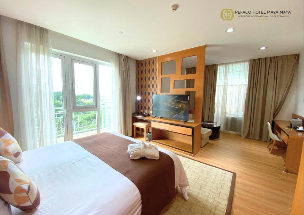 Set in Brazzaville, Pefaco Hotel Maya Maya has an outdoor swimming pool and tennis court. Each unit at the hotel has pool views and free WiFi. Local points of interest like Angolan Embassy and Cameroon Embassy (Brazaville) are reachable within 2.2 km and 2.5 km, respectively. The rooms at the hotel are fitted with a seating area. The rooms are fitted with a private bathroom with free toiletries and a hairdryer. The units will provide guests with a fridge. A buffet breakfast is served every morning at the property. Pefaco Hotel Maya Maya offers accommodation with a fitness centre and terrace. Speaking English, French and Chinese, staff are willing to help at any time of the day at the reception. Embassy of Gabon is 2.7 km from the accommodation, while Supermarket is 2.7 km from the property.