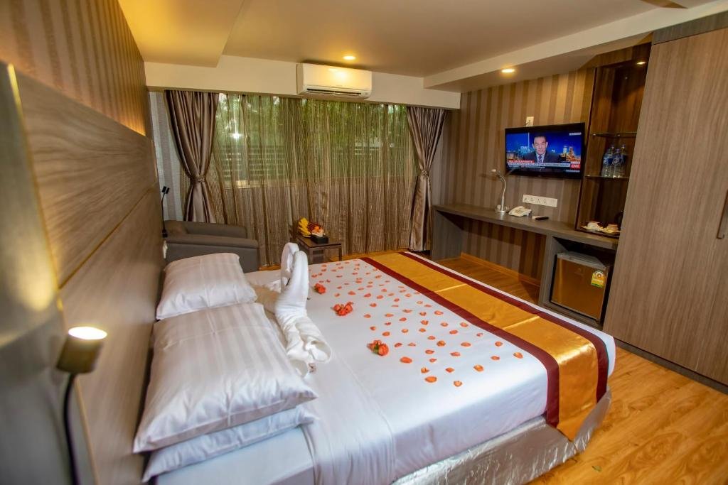 Comfortable Accommodations: Prestige Residences at Golden Valley by Grand United Hospitality in Yangon offers 4-star comfort with air-conditioning, private bathrooms, and modern amenities. Guests enjoy garden or city views, balconies, and free WiFi throughout the property. Exceptional Facilities: The hotel features a fitness center, swimming pool, terrace, and a lush garden. Additional facilities include a restaurant, business area, and free on-site private parking. Private check-in and check-out, a 24-hour front desk, and concierge services ensure a pleasant stay. Prime Location: Located 7.5 mi from Yangon International Airport, the hotel is near attractions such as Aung San Suu Kyi's House (1.1 mi) and Shwedagon Pagoda (1.4 mi). Guests appreciate the swimming pool, breakfast provided by the property, and attentive staff.