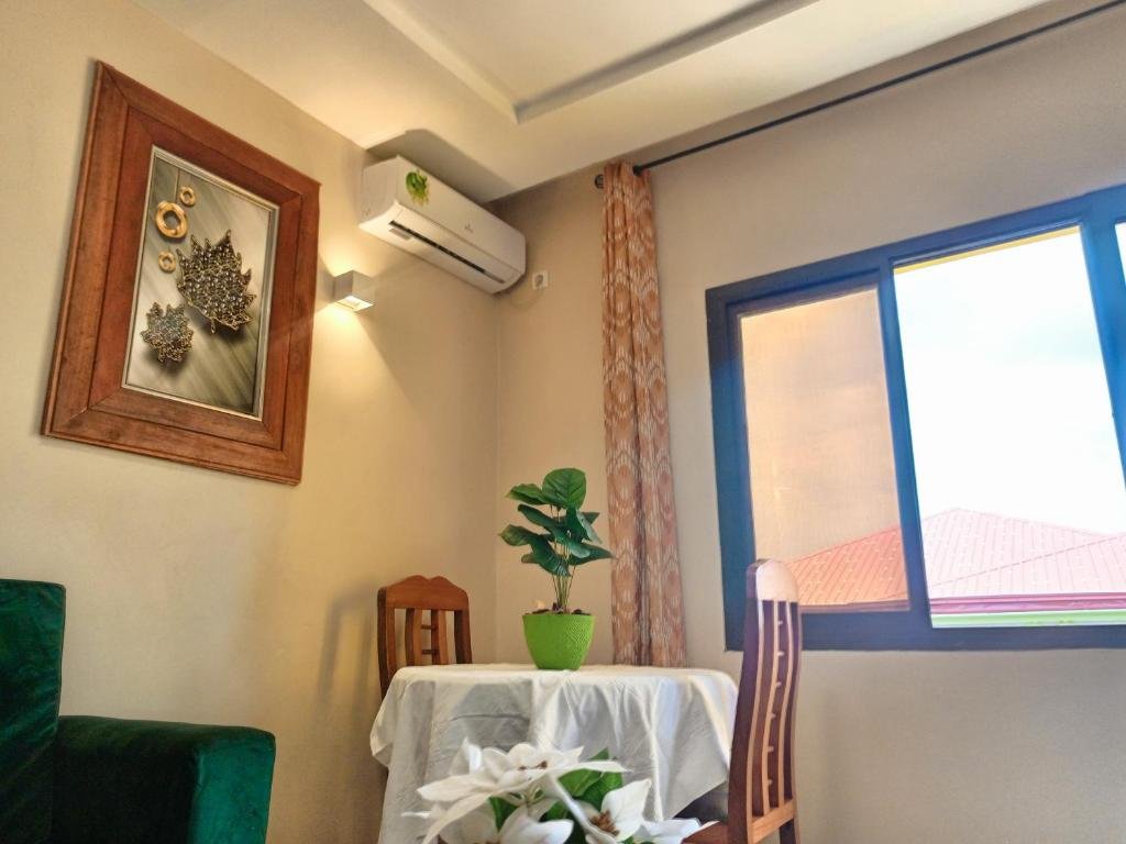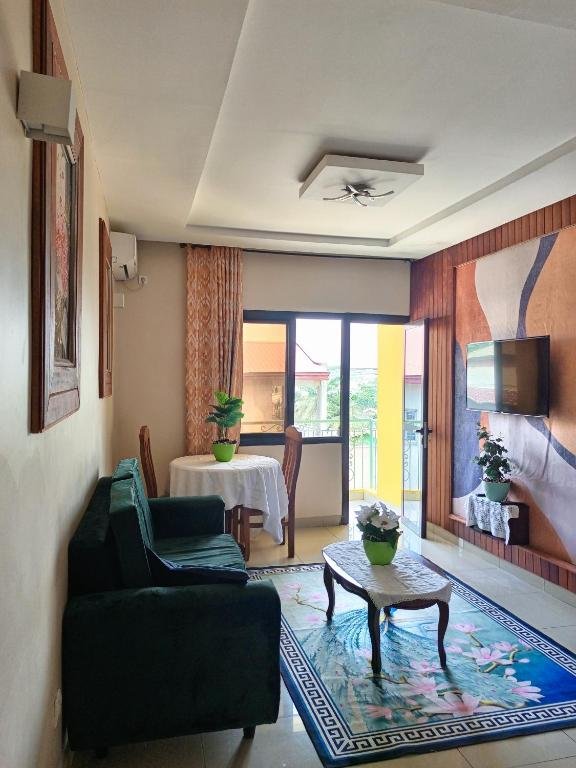 Elegant Accommodations: RÉSIDENCE DES 7 COLLINES in Yaoundé offers an adults-only apartment with a sun terrace, garden, and free WiFi. Guests enjoy garden and city views, ensuring a relaxing stay. Comfortable Amenities: The apartment features a patio, private bathroom, kitchen, and dining area. Additional amenities include air-conditioning, terrace, balcony, and free toiletries. Free on-site private parking is available. Convenient Location: Located 6.8 mi from Yaounde Central Station and 6.2 mi from Blackitude Museum and National Museum, the property is near attractions such as Mvog-Betsi Zoo and Ahmadou Ahidjo Stadium. An ice-skating rink is in the surroundings. Exceptional Service: Guests appreciate the concierge service, property staff, and room cleanliness. The 24-hour front desk, daily housekeeping, and full-day security provide added comfort.