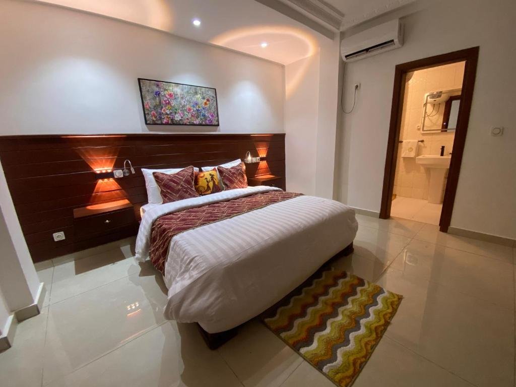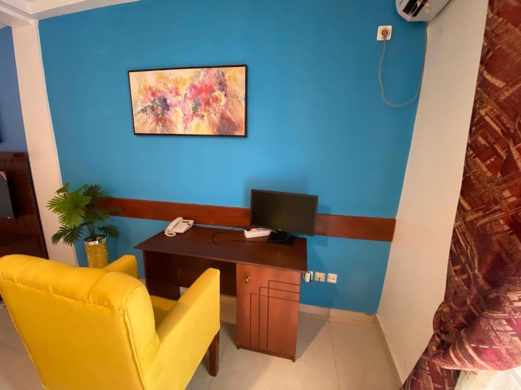 Comfortable Accommodations: Résidence hôtelière MEDOM Palace in Yaoundé offers aparthotel-style accommodations with terraces, balconies, and modern amenities. Each unit includes a kitchenette, private bathroom, and free WiFi. Dining and Leisure: Guests can enjoy a restaurant with a romantic ambiance, serving African, French, and international cuisines. The bar offers a variety of cocktails, and a fitness room provides leisure options. Convenient Location: Located 14 mi from Yaoundé Nsimalen International Airport, the aparthotel is near attractions such as Yaounde Central Station (2.5 mi) and the National Museum (3 mi). Free on-site private parking is available.