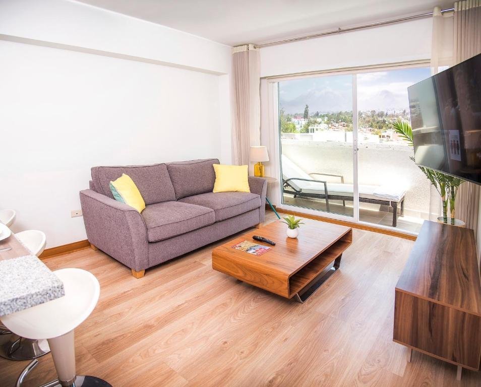 Prime Location: Resort Style Condo near heart of AQP is situated in Arequipa, Peru. Melgar Stadium lies 2 km away, while UNSA Monumental Stadium is less than 1 km from the property. Rodríguez Ballón International Airport is 10 km distant. Exceptional Facilities: Guests enjoy a fitness centre, sun terrace, and indoor swimming pool. Free WiFi is available throughout the apartment. Additional amenities include a lounge, public bath, and 24-hour front desk. Comfortable Accommodation: The apartment features one bedroom, one bathroom, and a living room. Amenities include a kitchenette, balcony with garden views, and streaming services. Nearby Attractions: Attractions such as Arequipa Main Square and Yanahuara Church are 3 km away. Other points of interest include Sabandia Mill and Goyeneche Palace, each 3 km from the property.