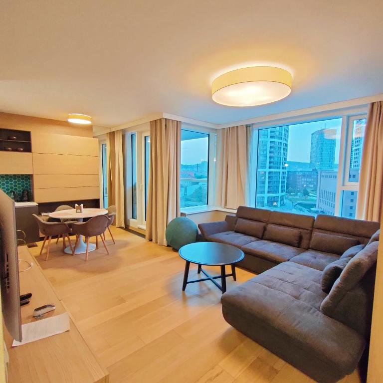 Central Location: SAG Panorama city free parking in Bratislava offers a central location with nearby shops and attractions. St. Michael's Gate is 1.7 km away, while Bratislava Castle lies 4.7 km from the apartment. Comfortable Amenities: Guests enjoy free WiFi, a sun terrace, and private check-in and check-out services. Additional facilities include a lounge, minimarket, outdoor play area, and full-day security. Modern Comforts: The apartment features air-conditioning, a balcony with mountain views, and a fully equipped kitchen. Other amenities include a washing machine, dishwasher, and soundproofing. Nearby Activities: Guests can engage in hiking, kayaking, or canoeing in the surrounding area. Bratislava Airport is 8 km away, providing convenient travel options.