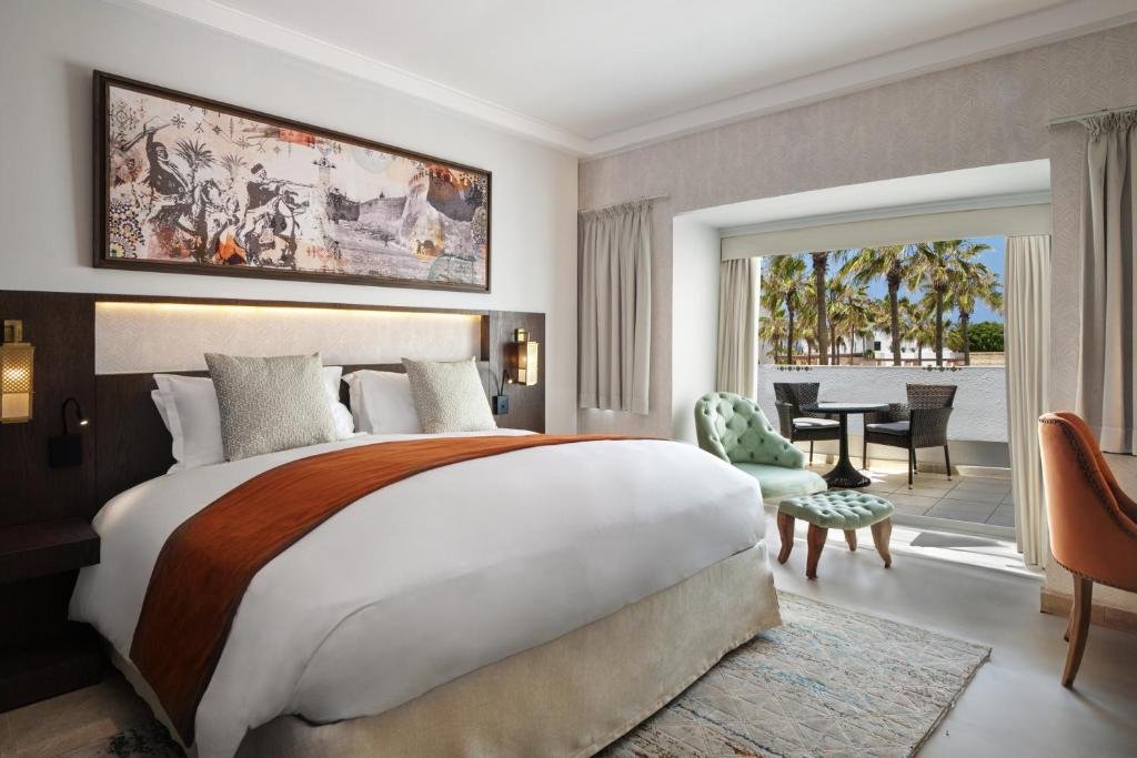 Exceptional Facilities: Sofitel Agadir Royal Bay Resort in Agadir offers spa facilities, a fitness centre, sun terrace, garden, restaurant, bar, and a year-round outdoor swimming pool. Guests enjoy free WiFi throughout the property. Comfortable Accommodations: Rooms feature air-conditioning, private bathrooms, sea views, balconies, and modern amenities such as flat-screen TVs and soundproofing. Additional services include private check-in and check-out, a 24-hour front desk, and concierge service. Dining Experience: The family-friendly restaurant serves French, Mediterranean, Moroccan, and international cuisines with vegetarian, vegan, and gluten-free options. Breakfast includes local specialities, fresh pastries, and a variety of beverages. Prime Location: Located 18 km from Agadir–Al Massira Airport and a 6-minute walk from Agadir Beach, the resort is near attractions like Medina Polizzi and Agadir Oufella Ruins. Guests appreciate the attentive staff and excellent service.
