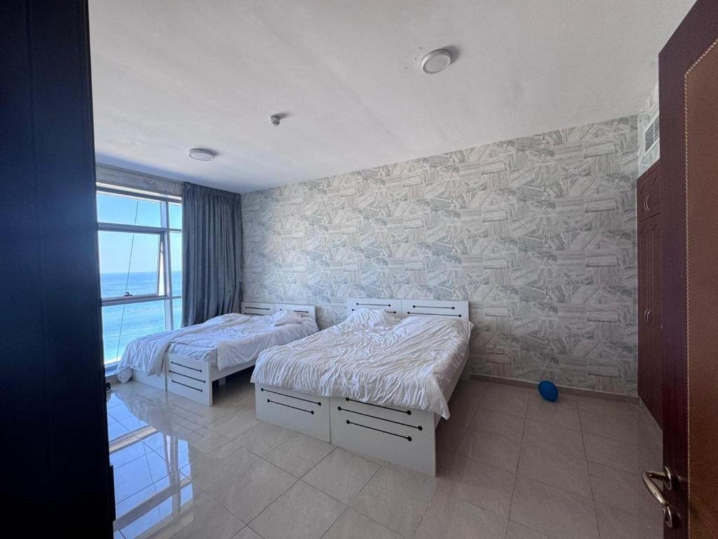 Beachfront Living: Sunrise Ajman sea view in Ajman offers direct beachfront access, a terrace, and a year-round outdoor swimming pool. Guests enjoy free WiFi throughout the apartment. Comfortable Amenities: The property features a hot tub, family rooms, and free on-site private parking. Additional amenities include air-conditioning, a balcony, washing machine, kitchen, and TV. Prime Location: Located 18 km from Sharjah International Airport, the apartment is a 4-minute walk from Ajman Beach. Nearby attractions include Ajman China Mall and Sharjah Aquarium, each 13 km away.