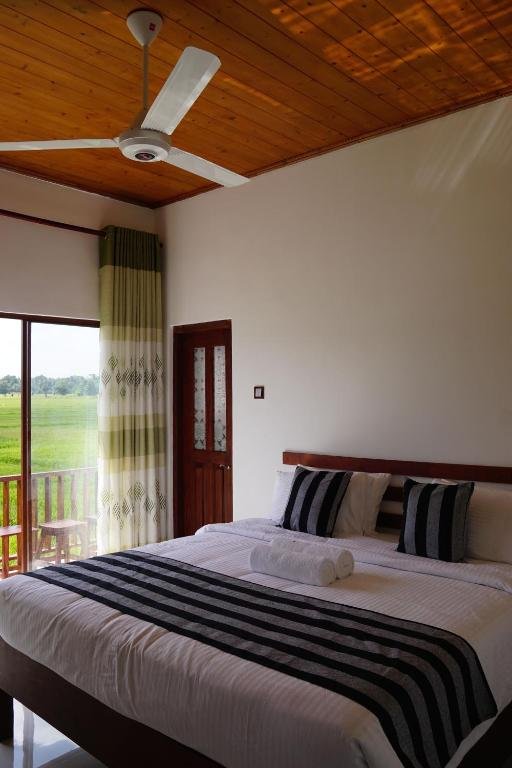 Comfortable Accommodations: Sunshine Tourist Rest in Anuradhapura offers air-conditioned rooms with private bathrooms, free WiFi, and garden views. Each room includes a work desk, TV, and soundproofing for a pleasant stay. Dining and Leisure: The family-friendly restaurant serves Asian cuisine in a welcoming atmosphere. Guests can relax in the lounge or outdoor seating area, enjoy the outdoor fireplace, and take advantage of the terrace and balcony. Convenient Location: Located 68 km from Sigiriya Airport, the guest house is near attractions such as Jaya Sri Maha Bodhi (4 km) and Kada Panaha Tank (6 km). Free on-site private parking is available, and the property is highly rated for its scenic location and attentive host.