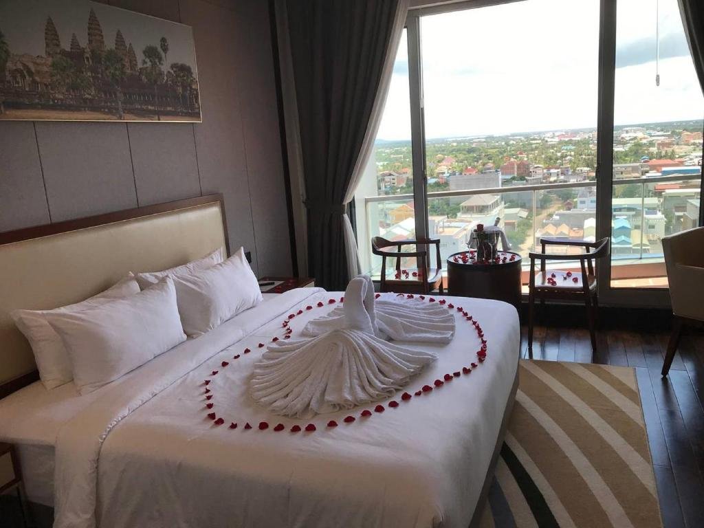Elegant Accommodation: V V Hotel Battambang in Battambang offers spacious and comfortable rooms with air-conditioning, private bathrooms, and balconies. Guests enjoy free WiFi, minibars, and modern amenities. Exceptional Facilities: The hotel features a rooftop swimming pool, sauna, garden, terrace, restaurant, and bar. Additional services include a steam room, 24-hour front desk, concierge, and free on-site parking. Dining Experience: The family-friendly restaurant serves Chinese, French, American, and local cuisines. Meals include brunch, lunch, dinner, and high tea, accommodating vegetarian, gluten-free, and dairy-free diets. Prime Location: Located 9 minutes from Colonial Buildings and 1.1 km from Battambang Museum, the hotel is near attractions such as Bamboo Train Battambang and Phare Ponleu Selpak. Free on-site parking and a paid shuttle service enhance convenience.
