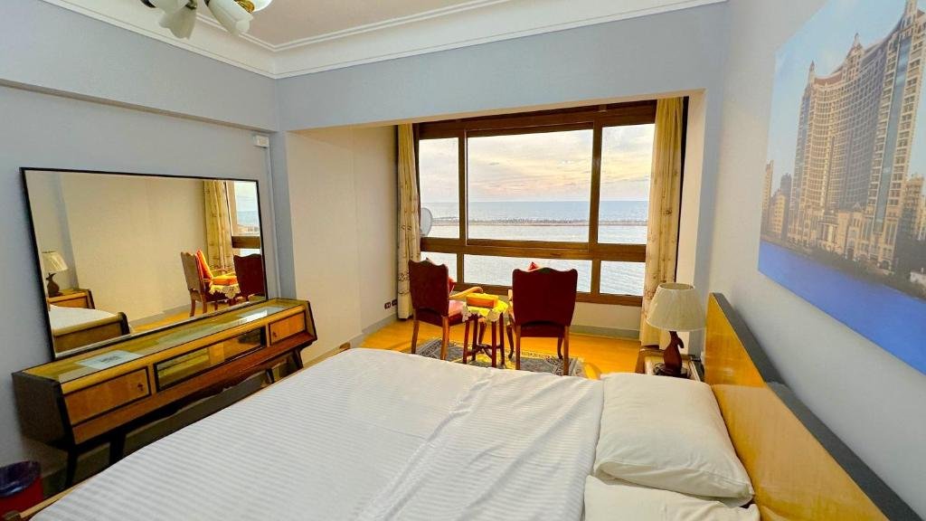 Prime Location: Vintage Modernized Sea View Apartment in Alexandria offers beachfront access with stunning sea views. Abu Haif Beach is an 18-minute walk away, while Borg el Arab International Airport lies 59 km from the property. Comfortable Accommodation: The apartment features two bedrooms, two bathrooms, and a spacious living room. Recently renovated, it includes a terrace, balcony, and free WiFi. Guests appreciate the room cleanliness and private check-in and check-out services. Convenient Facilities: The property provides a minimarket, lift, paid airport shuttle, full-day security, and luggage storage. Additional amenities include a washing machine, dining area, and free toiletries. Nearby Attractions: Sidi Gaber Railway Station is 7 km away, Alexandria Zoo 9 km, and the Catacombs of Kom el Shoqafa 14 km from the apartment.