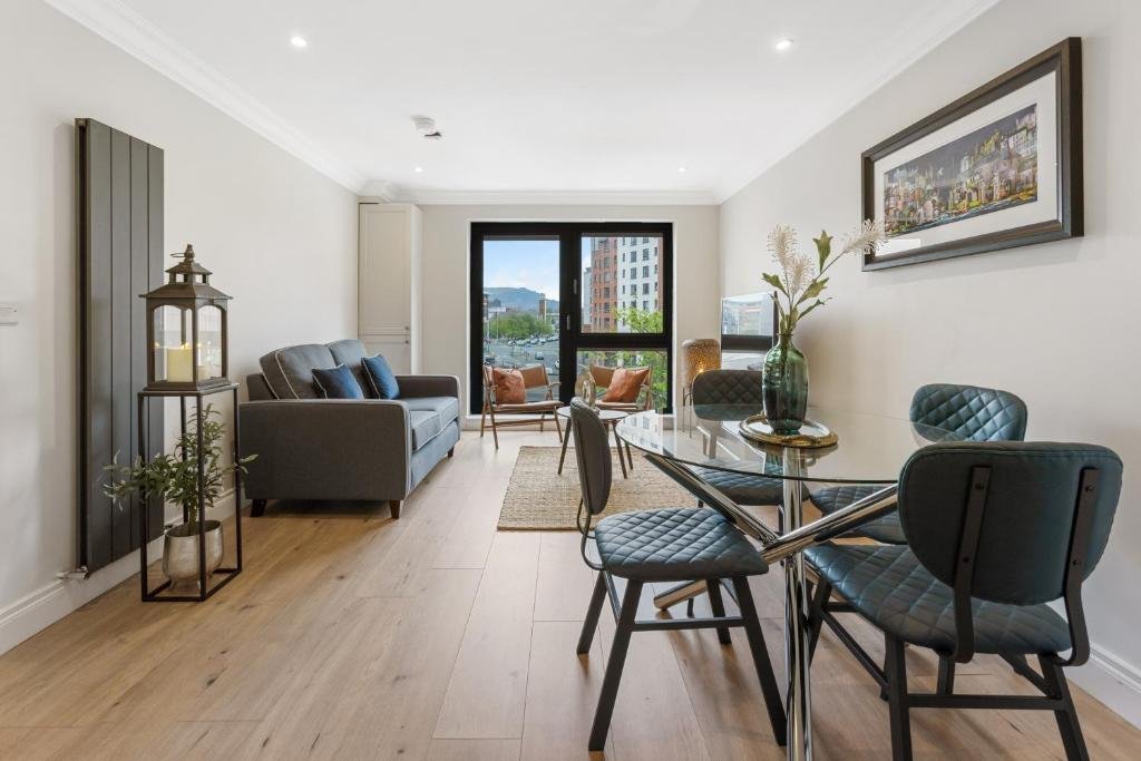 Historic Setting: Wilton House in Belfast is housed in a historic building, offering a unique and elegant setting. Modern Amenities: Guests enjoy free WiFi, private check-in and check-out services, family rooms, bicycle parking, and luggage storage. Comfortable Accommodations: The apartment features a private bathroom, kitchen with modern appliances, city views, and a dining area. Additional amenities include bathrobes, mountain views, and soundproofing. Prime Location: Located 6 km from George Best Belfast City Airport, the property is close to attractions such as The Belfast Empire Music Hall (14-minute walk) and Titanic Belfast (3.8 km). Highly rated for its convenient location and excellent host.