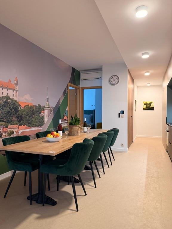 Prime City Centre Location: Zora Exclusive Apartments by CHORS in Bratislava offers a convenient location with St. Michael's Gate just 1.7 km away. Bratislava Airport is 8 km from the property. Exceptional Facilities: Guests enjoy free WiFi, private check-in and check-out, a 24-hour front desk, lift, minimarket, family rooms, full-day security, express check-in and check-out, and a children's playground. Comfortable Accommodations: Recently renovated apartments feature air-conditioning, kitchenette, balcony with mountain or city views, streaming services, washing machine, private bathroom, and modern amenities. Nearby Attractions: Nearby attractions include Ondrej Nepela Arena (3.4 km), Bratislava Castle (4.7 km), and UFO Observation Deck (4.9 km).