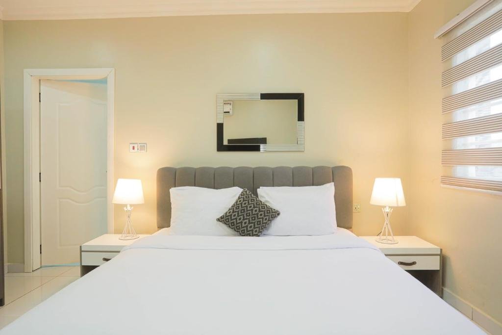 Prime Location: Accra Luxury Apartments @ Silicon Square in Accra offers a convenient location, situated 4 km from Kotoka International Airport. Nearby attractions include Kwame Nkrumah Memorial Park and Independence Arch, each 14 km away. Comfortable Accommodations: The apartment features air-conditioning, a terrace with city views, and free WiFi. Guests enjoy amenities such as a washing machine, private bathroom, and a fully equipped kitchen. Convenient Facilities: The property provides a free airport shuttle service, a 24-hour front desk, and a minimarket. Additional services include a hairdresser, laundry, and tour desk. Guest Satisfaction: Highly rated for its convenient location, room cleanliness, and attentive host.
