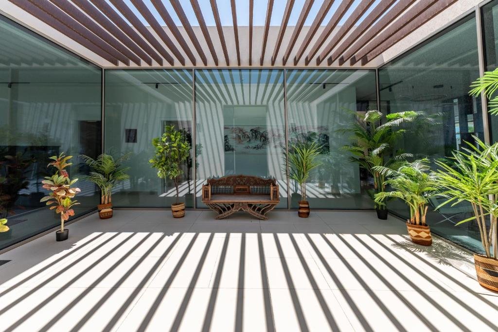 Beachfront Location: Ajman Villa, Exclusive 21 Al Zorah in Ajman offers direct beachfront access with stunning sea views. Guests can relax on the terrace or take a dip in the outdoor swimming pool. Comfortable Accommodations: The villa features family rooms, a lounge, and a hot tub. Free WiFi is available throughout the property, ensuring connectivity for all guests. Convenient Amenities: Amenities include a fully equipped kitchen, washing machine, and private bathrooms. Additional facilities include a dining area, outdoor seating, and free on-site private parking. Nearby Attractions: Sharjah International Airport is 25 km away. Points of interest such as Ajman China Mall (8 km) and Dubai Mall (44 km) are easily accessible.