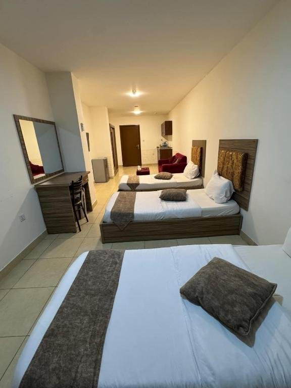 Comfortable Accommodation: Al-RAYAN HOTEL SUITES in Amman offers apartment-style rooms with free WiFi, air-conditioning, and private bathrooms. Each unit includes a kitchenette, dining area, and modern amenities for a pleasant stay. Convenient Facilities: Guests benefit from private check-in and check-out, a 24-hour front desk, and a paid shuttle service. Additional services include beauty treatments, a minimarket, daily housekeeping, grocery delivery, and a child-friendly buffet. Dining Experience: A buffet breakfast is served with local specialities, warm dishes, fresh pastries, pancakes, and juice. The on-site restaurant offers a variety of dining options, including a cosy outdoor seating area and picnic spots. Prime Location: Located less than 1 km from Jordan Gate Towers and 33 km from Queen Alia International Airport, the hotel is close to attractions such as Zahran Palace and The Children's Museum.
