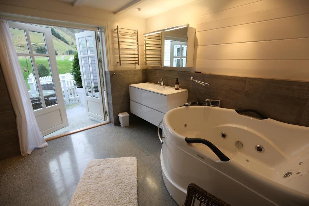 Beachfront Living: Alnes Gård in Godøy offers direct beachfront access with a private beach area. Guests can relax on the sun terrace or in the garden, enjoying sea views and a peaceful setting. Comfortable Amenities: The apartment features air-conditioning, a kitchenette, and a spa bath. Additional amenities include a hot tub, outdoor seating area, picnic spot, and barbecue facilities. Free WiFi is available throughout the property. Local Attractions: Located 19 km from Ålesund Vigra Airport, Alnes Gård is near attractions such as Color Line Stadion and Ålesund Aquarium, each 22 km away. Guests can enjoy fishing, skiing, hiking, and cycling in the surrounding area. Highly Rated by Guests: Alnes Gård receives high ratings for its excellent facilities and comfortable accommodations, ensuring a memorable stay for all visitors.