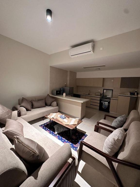 Elegant Accommodation: Alraha VIP Marsa zayed Aqaba offers a comfortable apartment in Aqaba. Guests enjoy a swimming pool with a view, a lush garden, and a spacious terrace. Free WiFi is available throughout the property. Modern Amenities: The apartment features family rooms, air-conditioning, a hot tub, and a fully equipped kitchenette. Additional amenities include a balcony, washing machine, and free on-site private parking. Prime Location: Located 14 km from King Hussein International Airport, the property is close to attractions such as Royal Yacht Club (1.7 km) and Aqaba Fort (6-minute walk). Scuba diving is available in the surrounding area. Exceptional Service: Highly rated for its attentive staff and excellent service support, Alraha VIP Marsa zayed Aqaba ensures a pleasant and memorable stay.