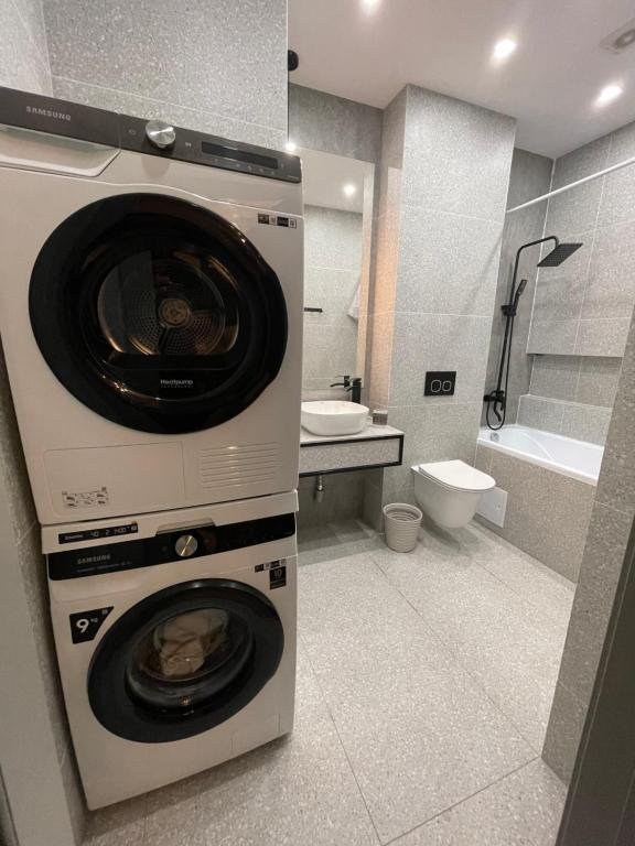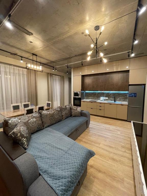 Spacious Accommodation: Apartment Florence моря 600 метров in Aktau offers a spacious layout with two bedrooms and two bathrooms. The living room features a sofa bed and parquet floors, ensuring comfort for all guests. Exceptional Facilities: Guests enjoy a private beach area, free WiFi, and a shared kitchen. Additional amenities include a lift, minimarket, outdoor play area, family rooms, bicycle parking, and a children's playground. Comfortable Living: The apartment provides sea views, a washing machine, kitchen, bath, tea and coffee maker, hairdryer, city view, dining table, sofa bed, inner courtyard view, refrigerator, microwave, shower, TV, sofa, parquet floors, dining area, electric kettle, kitchenware, wardrobe, oven, stovetop. Activities and Location: Guests can enjoy fishing and diving in the surrounding area. Aktau International Airport is 24 km away. The property is highly rated for room comfort.