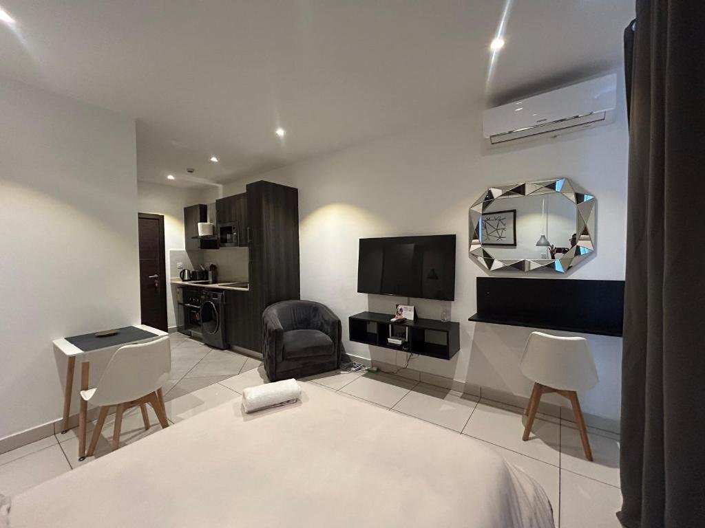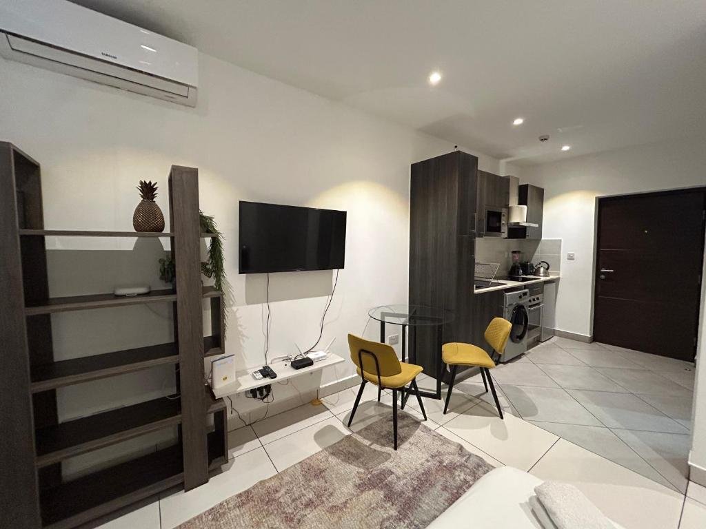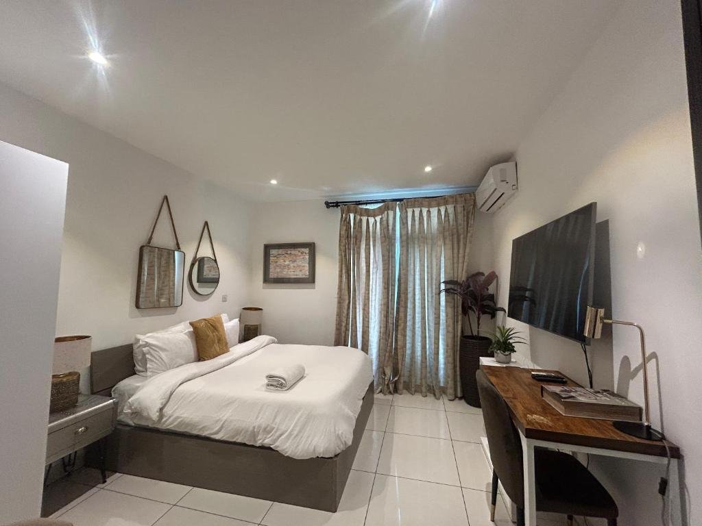 Comfortable Accommodation: APARTMENTS GH in Accra offers a range of apartments with air-conditioning, kitchenettes, balconies, and private bathrooms. Each apartment includes a washing machine, refrigerator, work desk, and soundproofing for a pleasant stay. Exceptional Facilities: Guests can enjoy a fitness centre, year-round outdoor swimming pool, terrace, restaurant, bar, and free WiFi. Additional amenities include a paid shuttle service, lift, family rooms, full-day security, and luggage storage. Prime Location: Located 1 km from Kotoka International Airport and less than 1 km from Dubois Centre for Panafrican Culture, the apartment is close to attractions such as La Palm Casino (4.5 km) and Independence Arch (6 km).