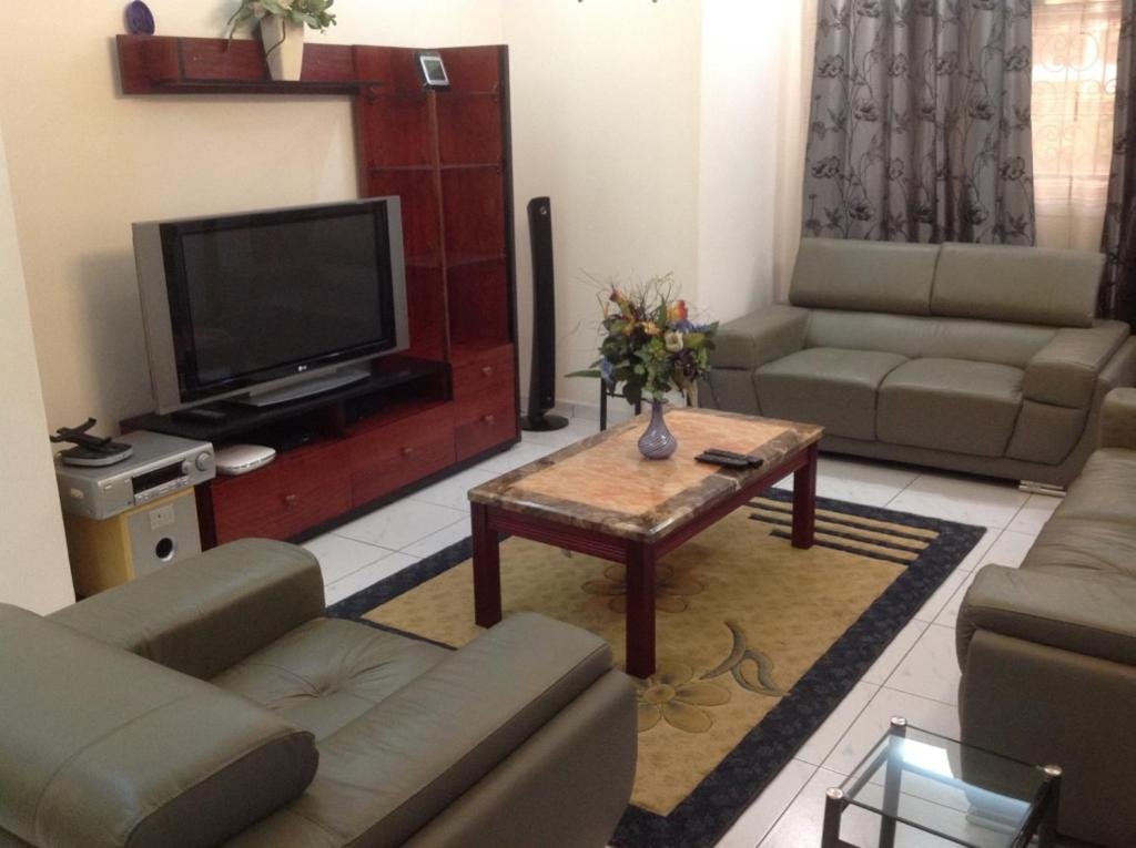 Spacious Accommodations: Bastos'Appart YAOUNDE in Yaoundé offers a spacious apartment with two bedrooms and two bathrooms. The living room features a sofa and a dining table, ensuring comfort for all guests. Outdoor Spaces: Guests can relax in the garden or on the terrace, enjoying garden and mountain views. The terrace provides a perfect spot for outdoor activities. Modern Amenities: The apartment includes air-conditioning, a fully equipped kitchen with a refrigerator, microwave, and oven. Additional amenities include a TV, washing machine, and free WiFi. Convenient Location: Located 3.1 mi from Yaoundé Central Station and 2.1 mi from the Yaounde Multipurpose Sports Complex, the property is highly rated for its safety, room cleanliness, and convenient location.