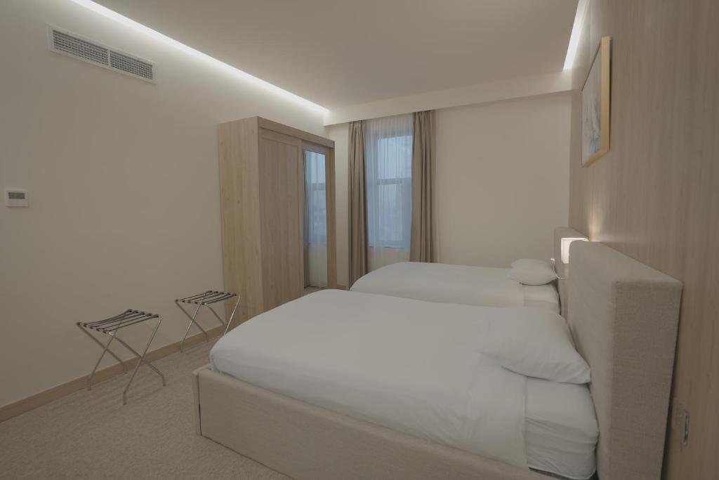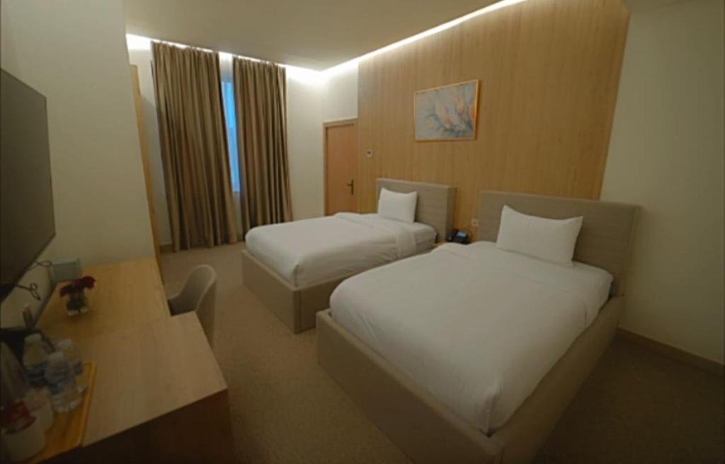 Comfortable Accommodations: BAZ Hotel University District in Baghdad offers family rooms with air-conditioning, private bathrooms, and city views. Each room includes a work desk, free toiletries, and a TV. Dining Experience: The modern, family-friendly restaurant serves British and American cuisines with halal and vegetarian options. Breakfast includes local specialities, fresh pastries, and a variety of beverages. Facilities and Services: Guests enjoy a fitness centre, free WiFi, and a 24-hour front desk. Additional services include a paid shuttle, concierge, and luggage storage. Location and Attractions: Located 14 km from Baghdad International Airport, the hotel is near Abu Jaafar Al Mansour Monument (3.1 km) and Baghdad Tower (6 km).