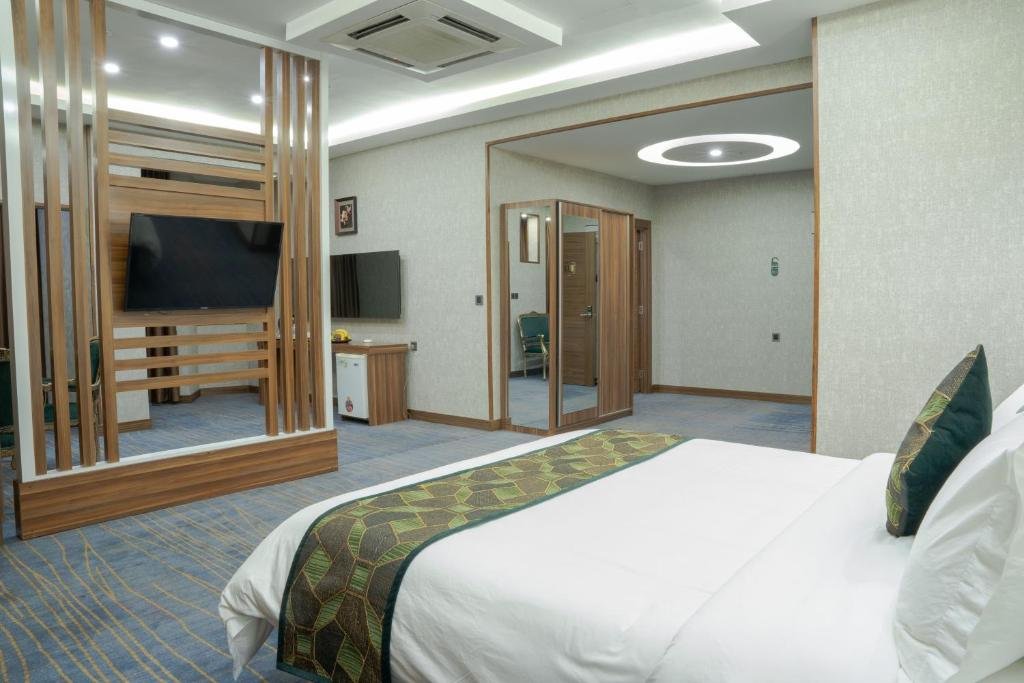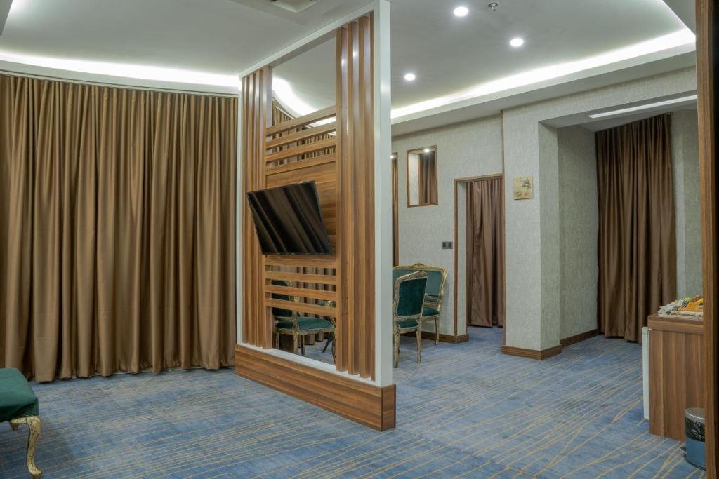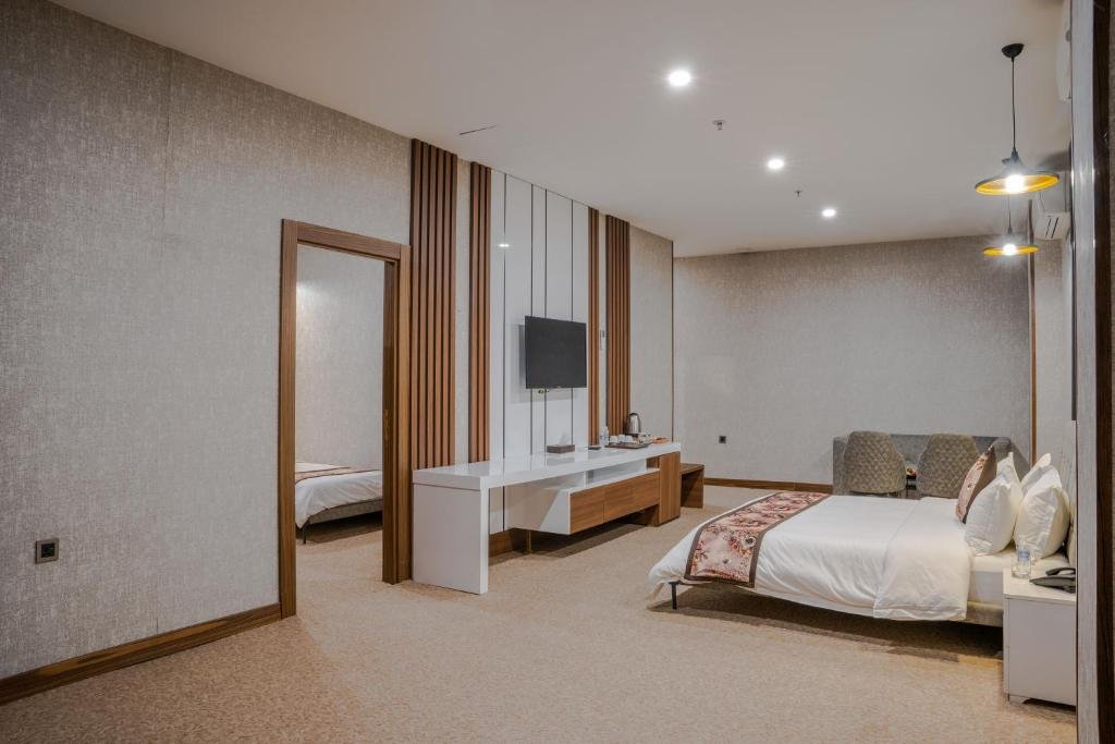 Elegant Accommodation: Bloom Hotel in Baghdad offers a 5-star experience with a terrace, restaurant, and free WiFi. Guests enjoy private check-in and check-out, a casino, and a 24-hour front desk. Comfortable Amenities: Rooms feature air-conditioning, balconies, and private bathrooms with free toiletries. Additional amenities include bathrobes, minibars, and soundproofing, ensuring a relaxing stay. Dining Options: The hotel serves a variety of breakfast options, including continental, American, and buffet. Dining areas include a coffee shop, picnic area, and themed dinner nights, catering to diverse preferences. Prime Location: Located 23 km from Baghdad International Airport, the hotel is near attractions such as the National Theatre (2.1 km) and Firdos Square (3.7 km). Free off-site parking is available.