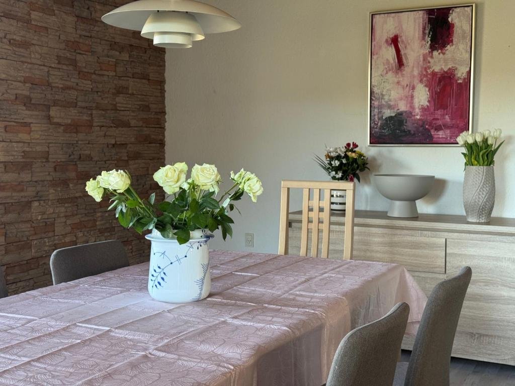 Spacious Accommodation: Briks and Dreams in Billund offers a spacious apartment with three bedrooms and a living room. The ground-floor unit features a terrace and garden views. Modern Amenities: Guests enjoy free WiFi, a fully equipped kitchen with a dishwasher and microwave, washing machine, and free on-site private parking. Additional amenities include a dining area, sofa bed, and outdoor furniture. Prime Location: Located 2 km from Billund Airport, the apartment is a short walk from Legoland Billund (17 minutes), LEGO House Billund (600 metres), and Lalandia Water Park (17 minutes). Nearby attractions include Koldinghus Royal Castle (39 km) and Givskud Zoo (24 km).