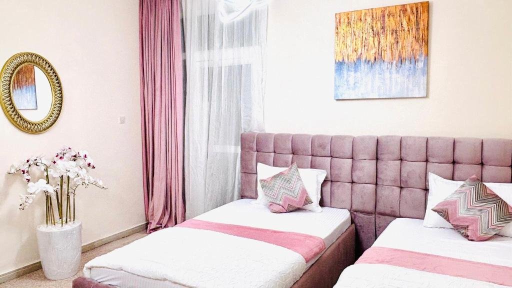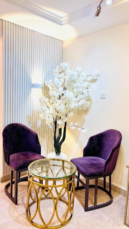 Spacious Accommodation: Canel View Holiday Home with Parking in Ajman offers a spacious apartment with one bedroom and two bathrooms. The property features a balcony with lake views, a fully equipped kitchen, and a comfortable living area. Modern Amenities: Guests enjoy free WiFi, a garden, and free on-site private parking. Additional facilities include a lift, minimarket, electric vehicle charging station, outdoor seating area, hairdresser/beautician, family rooms, full-day security, car hire, and luggage storage. Breakfast and Dining: A continental breakfast with juice and fruits is served daily. The apartment includes a dining area with a table and chairs, ensuring a pleasant start to the day. Convenient Location: Located 16 km from Sharjah International Airport, the property is close to attractions such as Ajman China Mall (10 km) and Sharjah Aquarium (15 km).