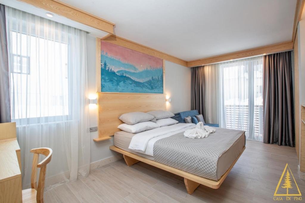 Comfortable Accommodations: Casa di Pino EcoLodge Hotel in Žabljak offers four-star apartments with balconies, private bathrooms, and modern amenities. Each apartment includes a kitchenette, dining area, and free WiFi. Relaxing Facilities: Guests can enjoy a sauna, garden, terrace, and bar. Additional facilities include a lounge, concierge service, ski equipment hire, and free on-site private parking. Delicious Breakfast: A variety of breakfast options are available, including continental, buffet, vegetarian, vegan, halal, gluten-free, and kosher. Local specialties, warm dishes, fresh pastries, and more are served. Prime Location: Located 1.9 mi from Black Lake, 6.8 mi from Viewpoint Tara Canyon, and 14 mi from Durdevica Tara Bridge. Podgorica Airport is 83 mi away. Activities include skiing, cycling, and film nights.