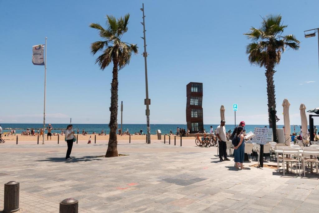 Beachfront Location: Charming Seaside Apartment in Barceloneta offers direct beachfront access and stunning sea views. Sant Miquel Beach is just a few steps away, while the Barcelona El Prat Airport lies 13 km from the property. Modern Amenities: The apartment features free WiFi, air-conditioning, a kitchenette, balcony, washing machine, and parquet floors. Additional amenities include a dining area, sofa, and TV. Nearby Attractions: Guests can explore the Picasso Museum (1.4 km), Port Olimpic (18-minute walk), and Plaça Reial (1.8 km). Boating opportunities are available in the surrounding area.