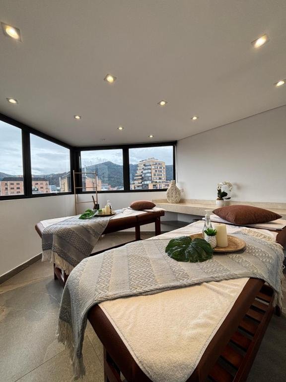 Boasting an indoor swimming pool with views of Bogotá, gym facilities and spa services, the hotel features a modern elevator with glass doors and impeccable décor. WiFi is free. The Cosmos 100 Hotel & Centro de Convenciones offers a 5-star ambiance and facilities. Guests can stop by the gift shop, unwind in the sauna room or book a beauty treatment. A buffet breakfast with world-famous Colombian coffee and treats is offered. Primavera resto serves gourmet dishes of regional cuisine and Me Kei Restaurant offers Asian specialties. Air-conditioned rooms at the Cosmos are styled in tones of beige, with parquet floors and Roman shades. They include work desks, cable TV and minibars. Some rooms also feature rotating panels with flat-screen TVs. The Cosmos is just 12 blocks from 93 St Park and 2.4 km from Unicentro Shopping Mall. Car rental and airport shuttles are available.