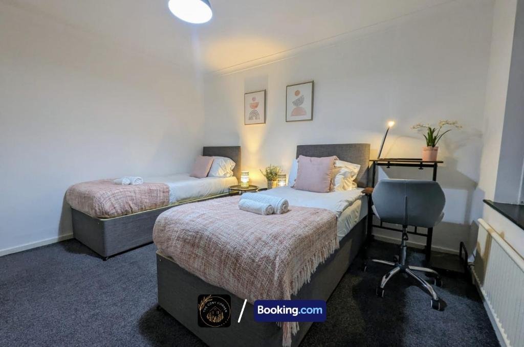 Spacious Accommodation: Cosy 3-Bed Home, Free Parking & WiFi in Bolton offers a spacious apartment with three bedrooms and a living room. The property features a terrace and a garden, providing ample outdoor space. Modern Amenities: Guests enjoy free WiFi, a fully equipped kitchen, washing machine, and a work desk. Additional facilities include a dining area, outdoor seating, and bicycle parking. Convenient Location: Located 34 km from Manchester Airport, the apartment is near attractions such as Reebok Stadium (10 km) and Heaton Park (19 km). Free on-site private parking is available. Highly rated by guests.