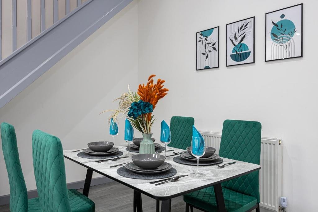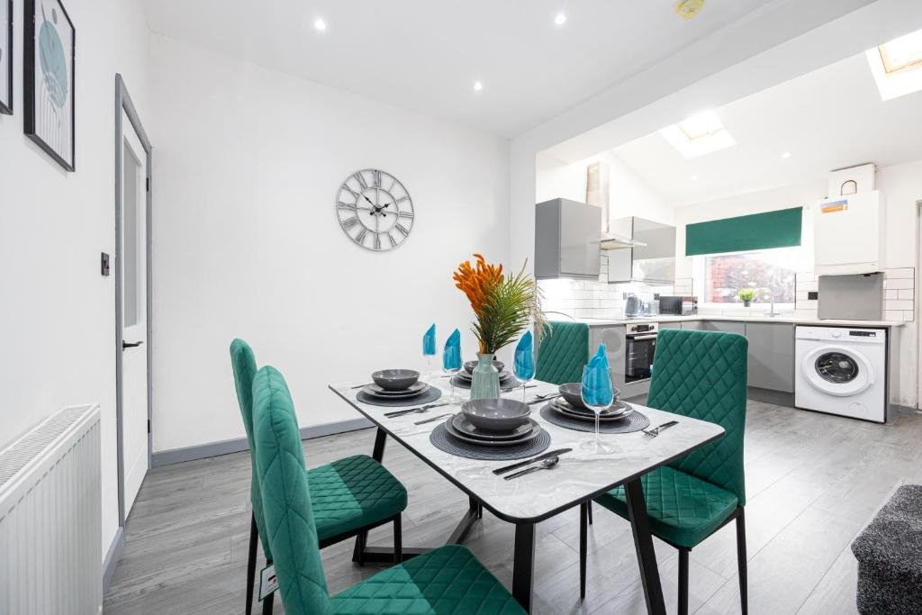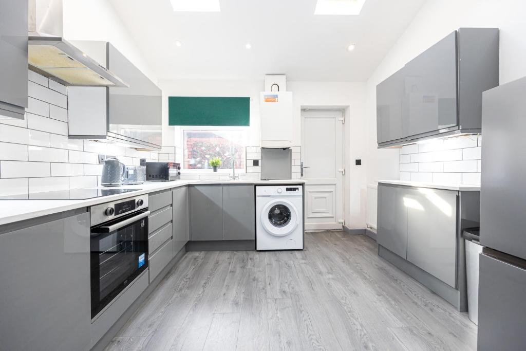 Comfortable Accommodation: Deluxe Bolton Cinema House 2BR Modern Retreat with Free Parking in Bolton offers a holiday home with two bedrooms and one bathroom. Guests enjoy free WiFi, a fully equipped kitchen, washing machine, and a dining area. Modern Amenities: The property features a work desk, TV, sofa, and a dining table. Additional amenities include a hairdryer, refrigerator, microwave, oven, stovetop, toaster, and electric kettle. Local Attractions: Reebok Stadium is 6 km away, Haydock Racecourse and Heaton Park are 21 km distant, and The Lowry and Old Trafford Stadium are 25 km from the property. Manchester Airport is 36 km away.