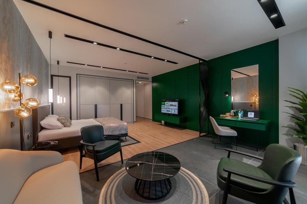 Comfortable Accommodations: Dostyk Business Hotel in Aktau offers family rooms with air-conditioning, private bathrooms, and modern amenities. Each room includes a work desk, minibar, and free WiFi. Dining and Leisure: Guests can enjoy a terrace, restaurant, and bar. The family-friendly restaurant serves Indian, Mediterranean, pizza, Steakhouse, Turkish, Russian, local, international, and barbecue grill cuisines. High tea is available. Convenient Services: The hotel provides a paid airport shuttle, lift, 24-hour front desk, concierge service, and free on-site private parking. Additional services include room service, breakfast in the room, and a tour desk. Prime Location: Located 25 km from Aktau International Airport, the hotel is a 19-minute walk from Aktau Beach. Nearby attractions include Aktau Beach and Aktau International Airport.
