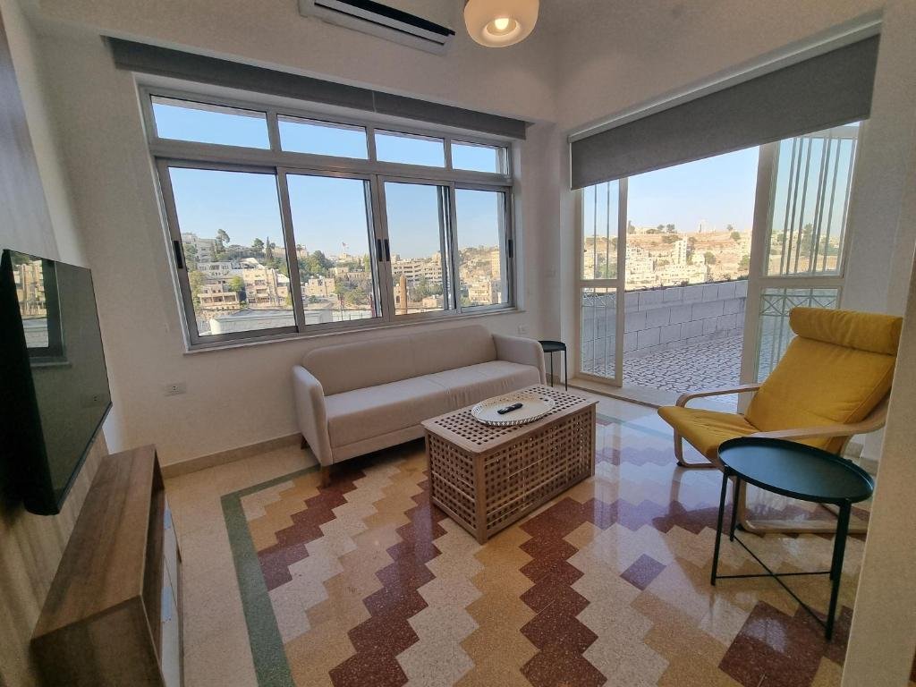 Elegant Accommodation: Downtown Living Boutique Apartments in Amman offers a 5-star experience with a garden, terrace, and free WiFi. Guests enjoy private check-in and check-out services, an outdoor seating area, and family rooms. Comfortable Amenities: Each apartment features a private bathroom, washing machine, and garden views. Additional amenities include air-conditioning, kitchenette, and a work desk. Free off-site parking is available. Prime Location: Located 700 metres from Rainbow Street and a 7-minute walk to Al Hussainy Mosque, the property is close to The Jordan Museum and Temple of Hercules.